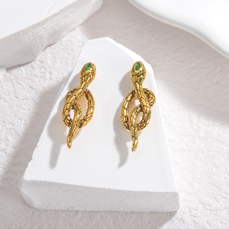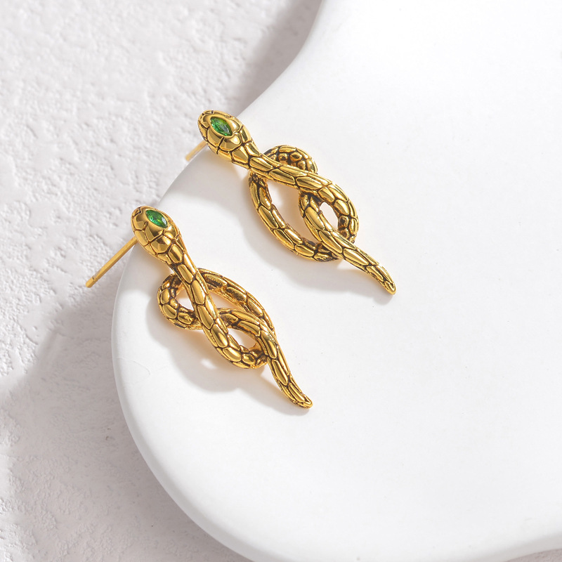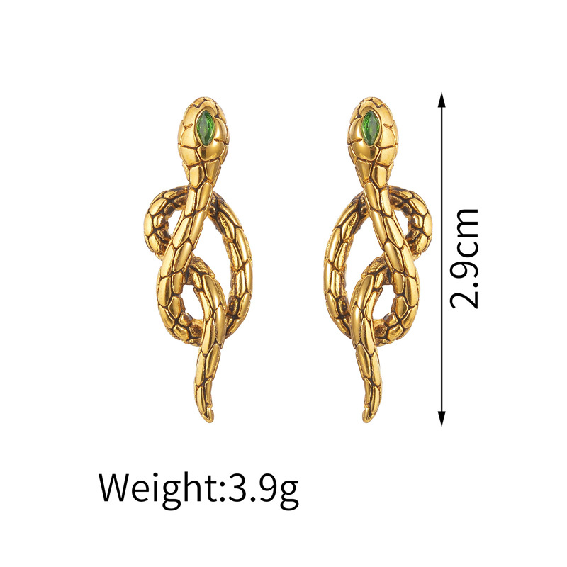 Orecchini in acciaio inossidabile, 304 acciaio inox, Serpente, placcato, per la donna & con strass & cavo, dorato, Venduto da coppia