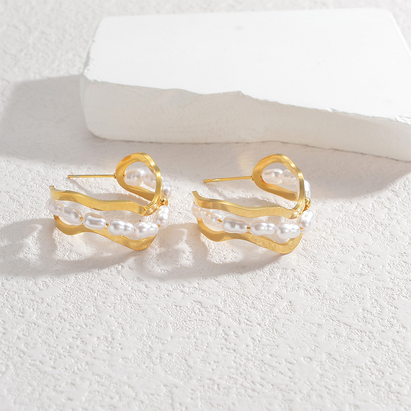 Orecchini in acciaio inossidabile, 304 acciaio inox, with perla in plastica, placcato, materiali diversi per la scelta & stili diversi per la scelta & per la donna, dorato, Venduto da coppia