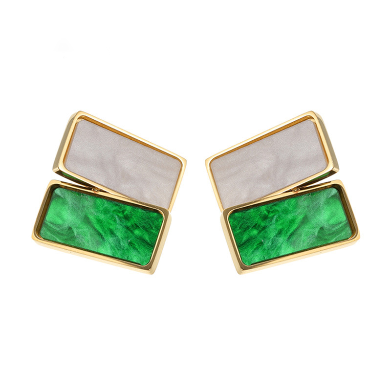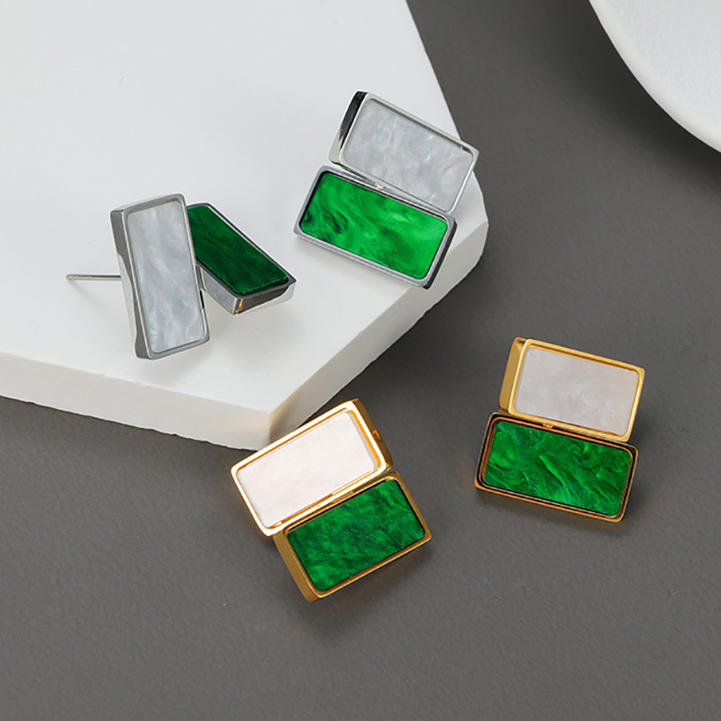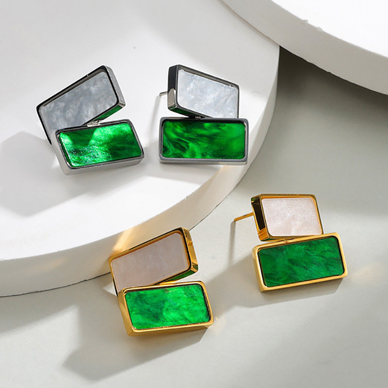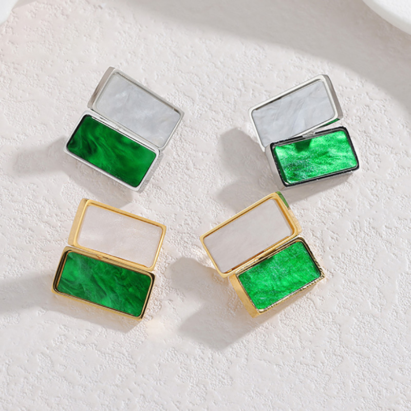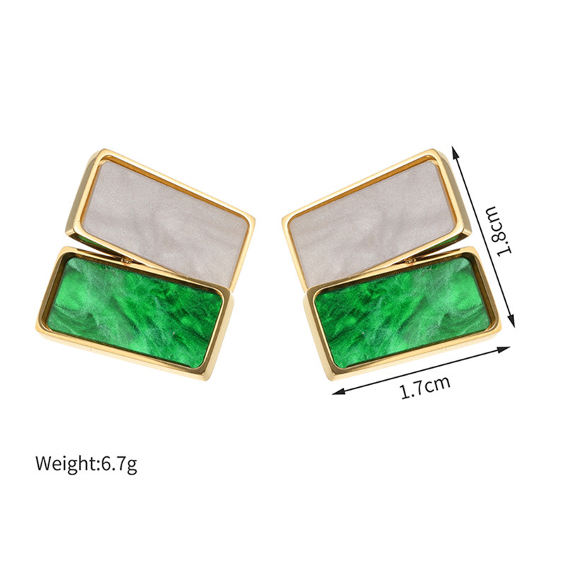 Orecchini in acciaio inossidabile, 304 acciaio inox, Quadrato, placcato, per la donna & smalto & bicolore, nessuno, Venduto da coppia