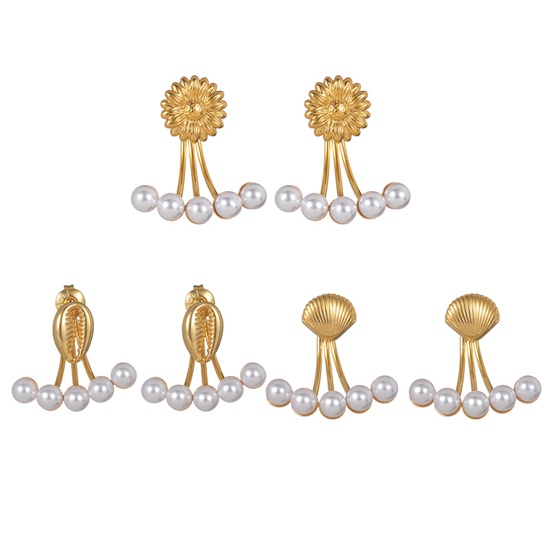 Orecchini in acciaio inossidabile, 304 acciaio inox, Fiore, placcato, gioielli di moda & per la donna, dorato, Venduto da coppia