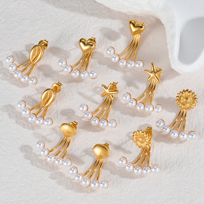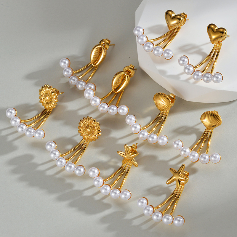 Orecchini in acciaio inossidabile, 304 acciaio inox, with perla in plastica, placcato, gioielli di moda & stili diversi per la scelta & per la donna, dorato, Venduto da coppia