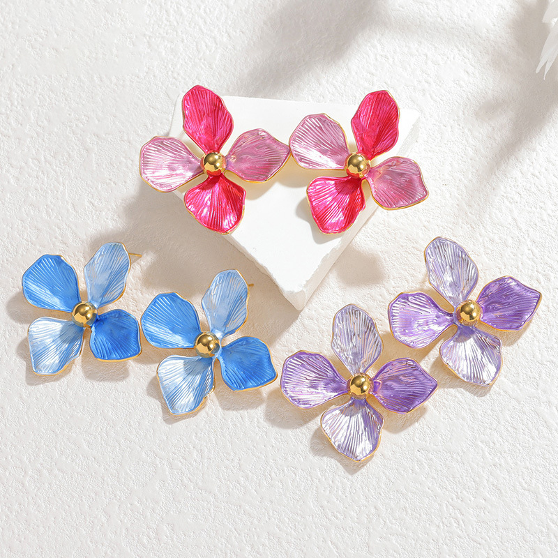 Orecchini in acciaio inossidabile, 304 acciaio inox, Fiore, placcato color oro, gioielli di moda & per la donna & smalto, nessuno, Venduto da coppia