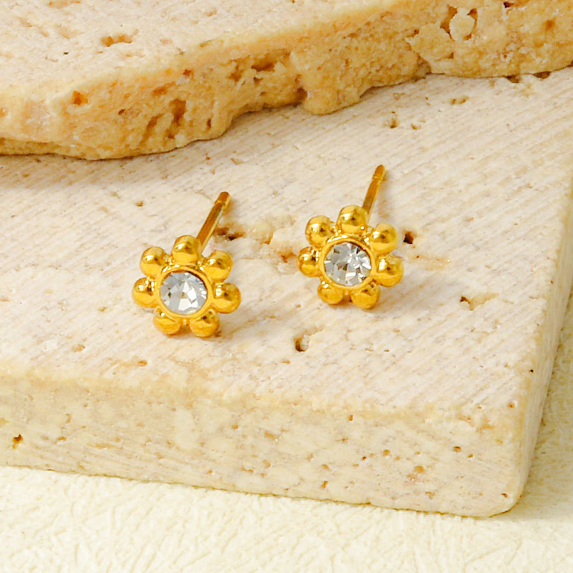 Orecchini in acciaio inossidabile, 304 acciaio inox, Fiore, placcato, gioielli di moda & per la donna, dorato, Venduto da coppia