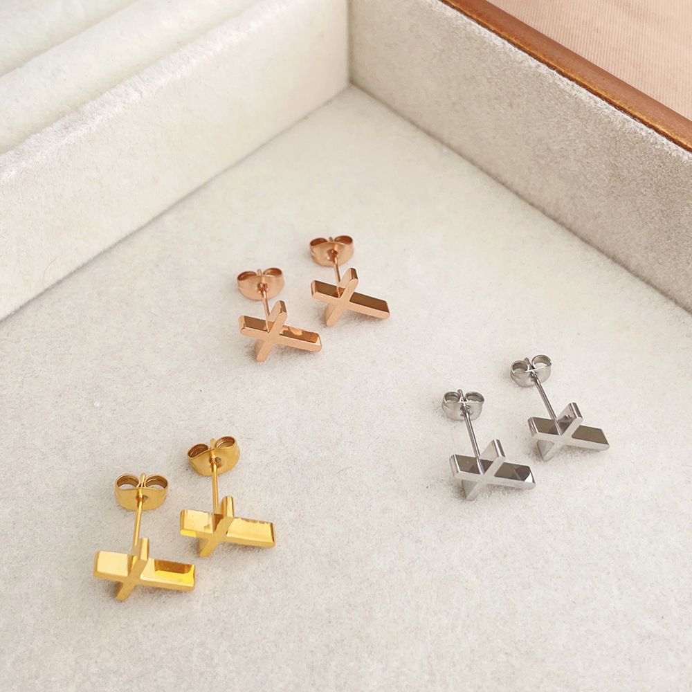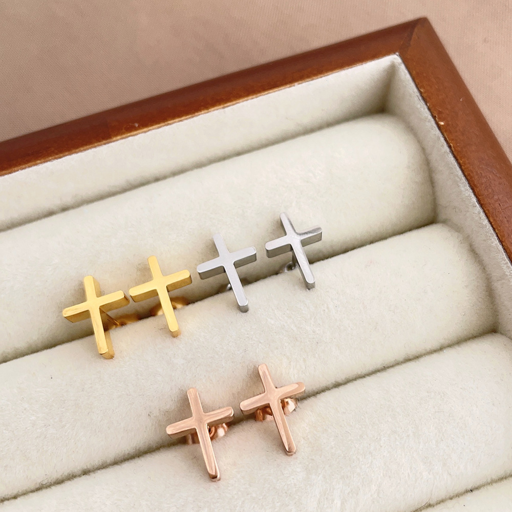 Orecchini in acciaio inossidabile, 304 acciaio inox, Croce, placcato, gioielli di moda & per la donna, nessuno, Venduto da coppia