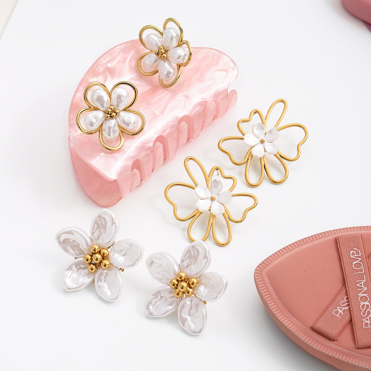 Orecchini in acciaio inossidabile, 304 acciaio inox, with acrilico, Fiore, Placcato oro 18K, stili diversi per la scelta & per la donna & cavo, Venduto da coppia
