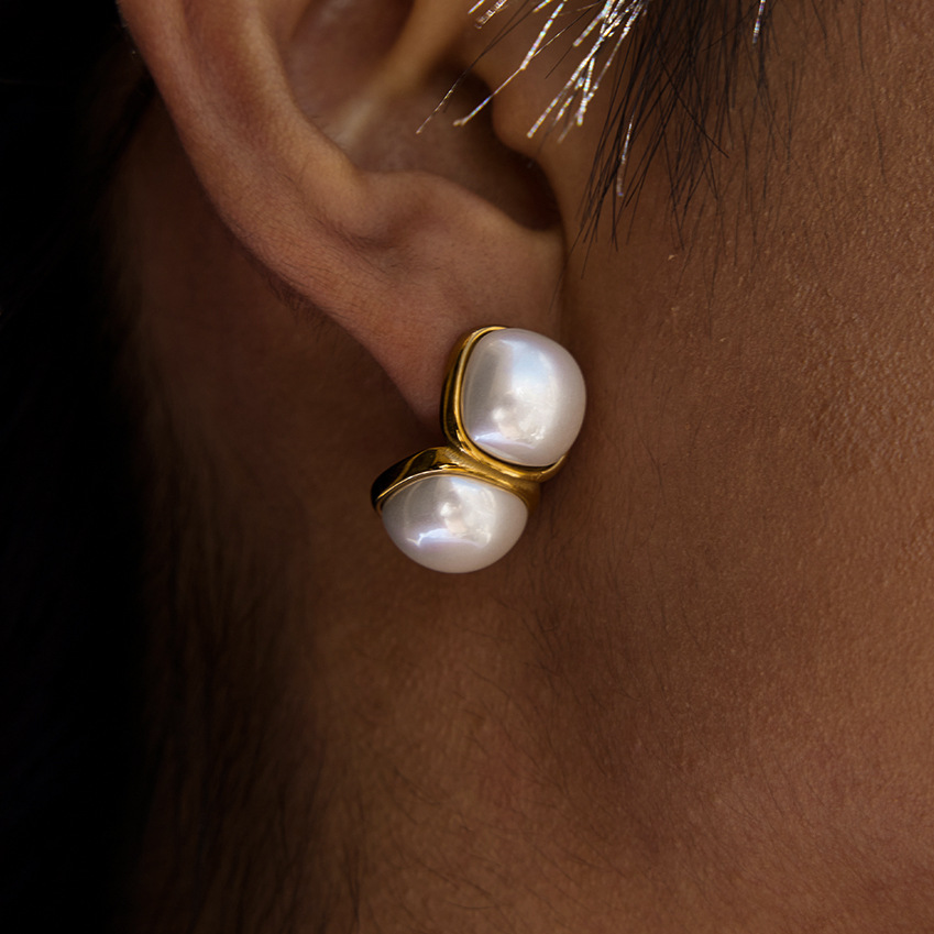 Orecchini in acciaio inossidabile, 304 acciaio inox, with perla in plastica, placcato color oro, gioielli di moda, nessuno, Venduto da coppia