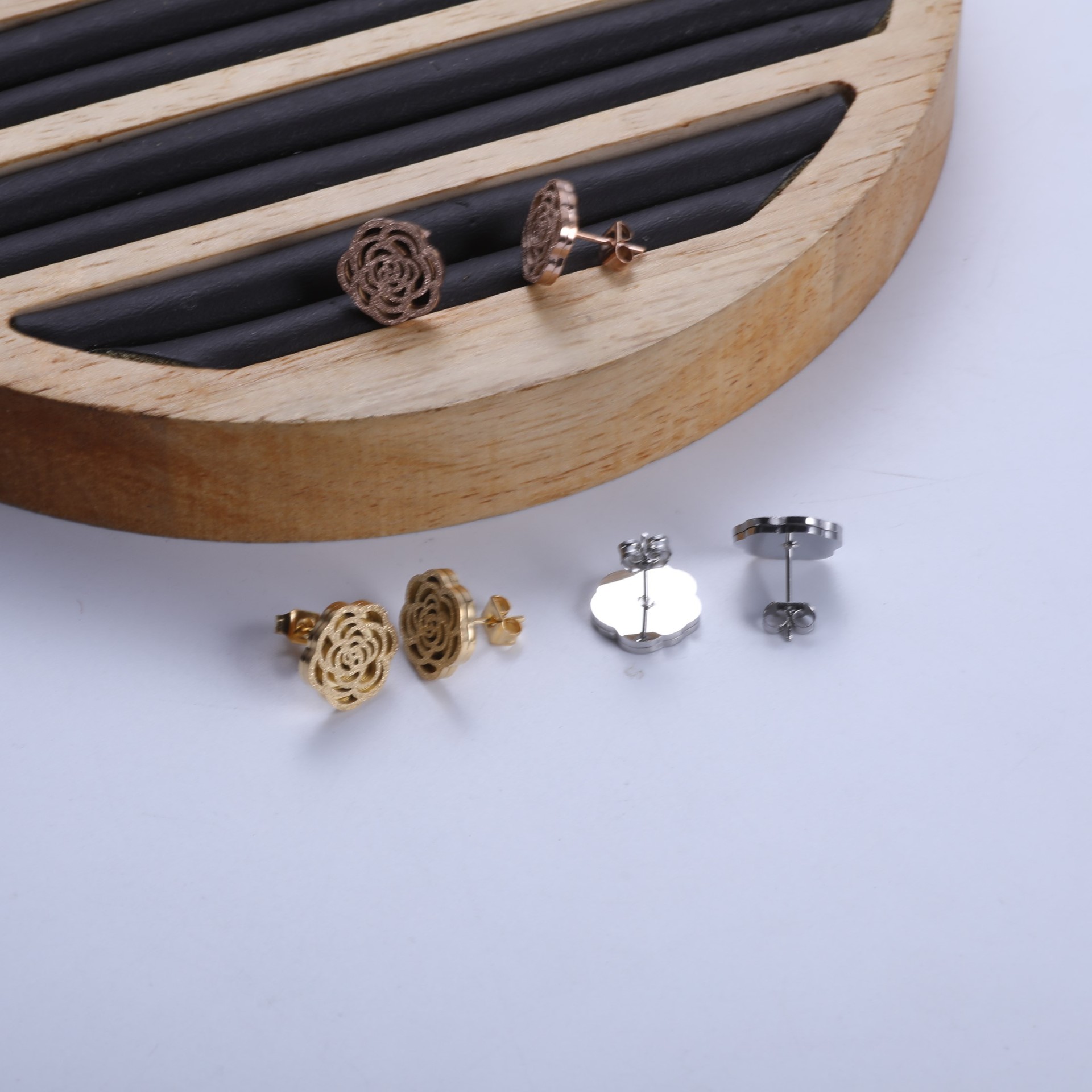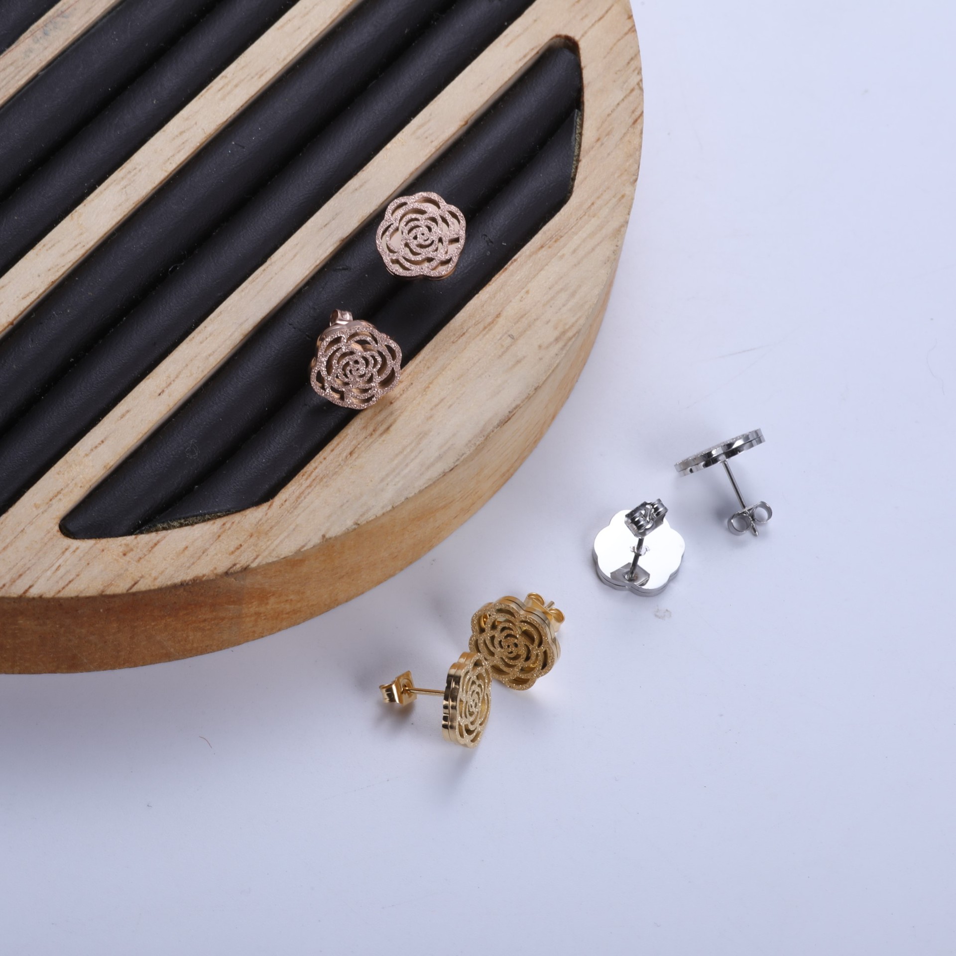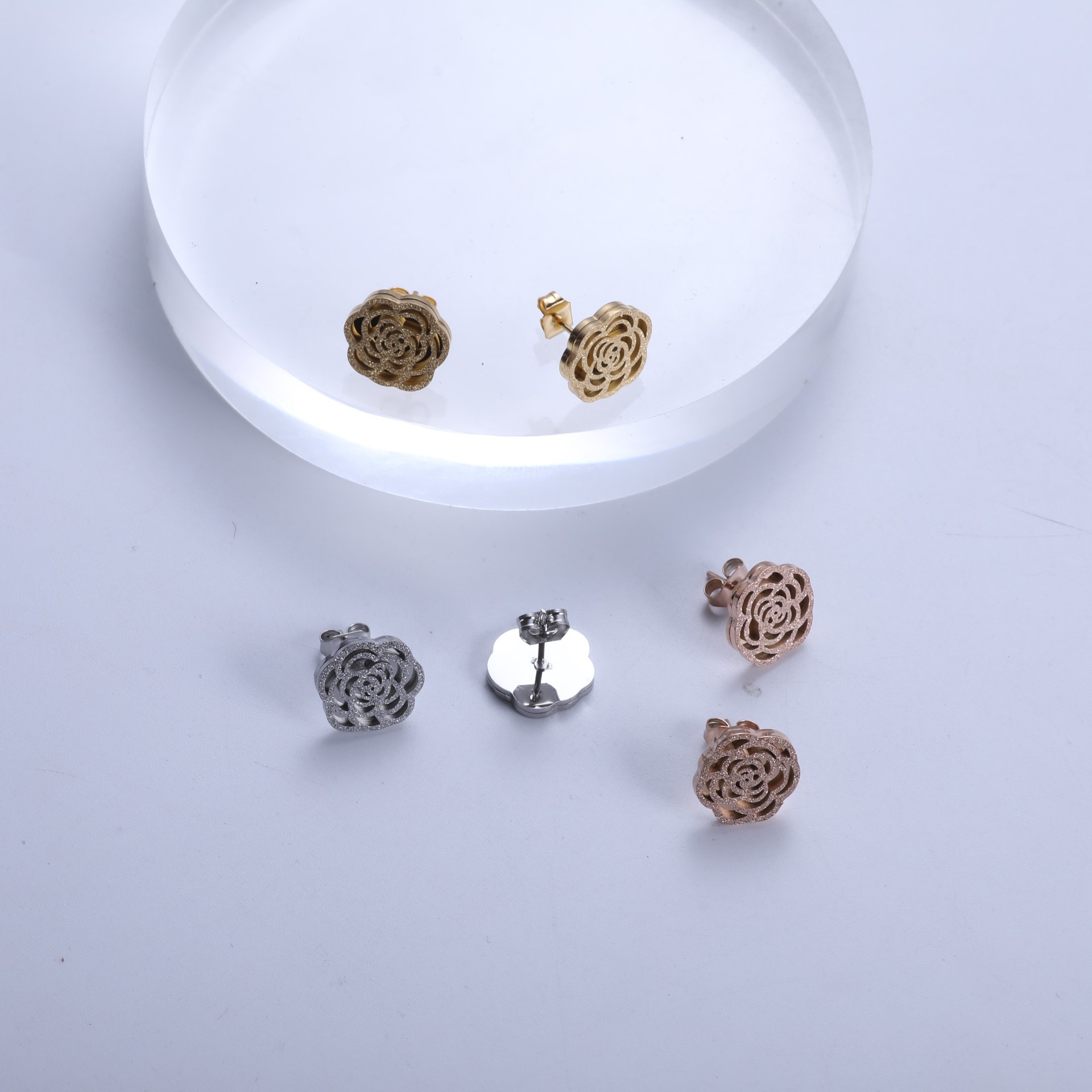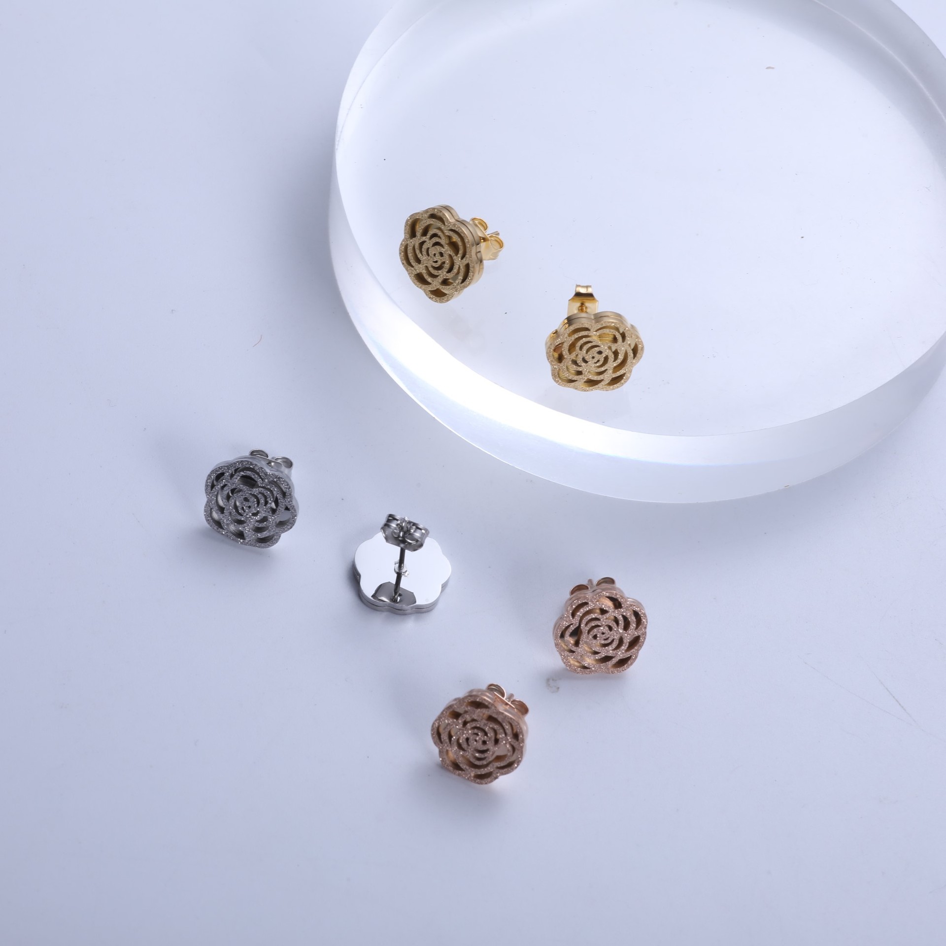 1:Rose earrings rose gold2:Rose earrings gold3:Rose earrings steel color