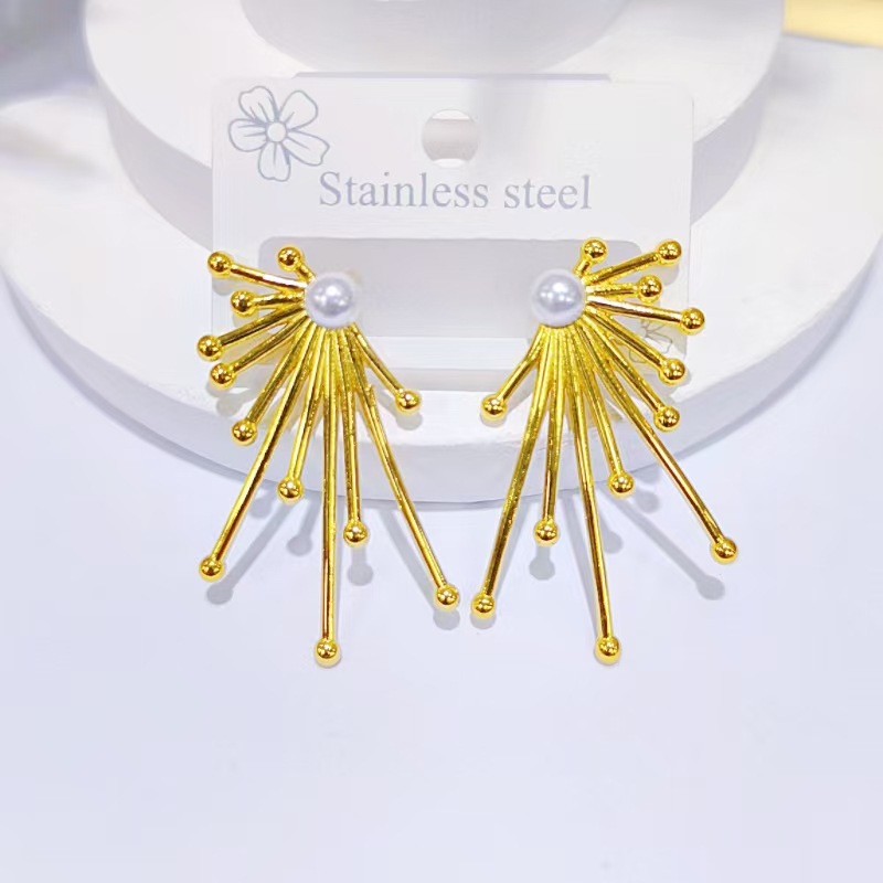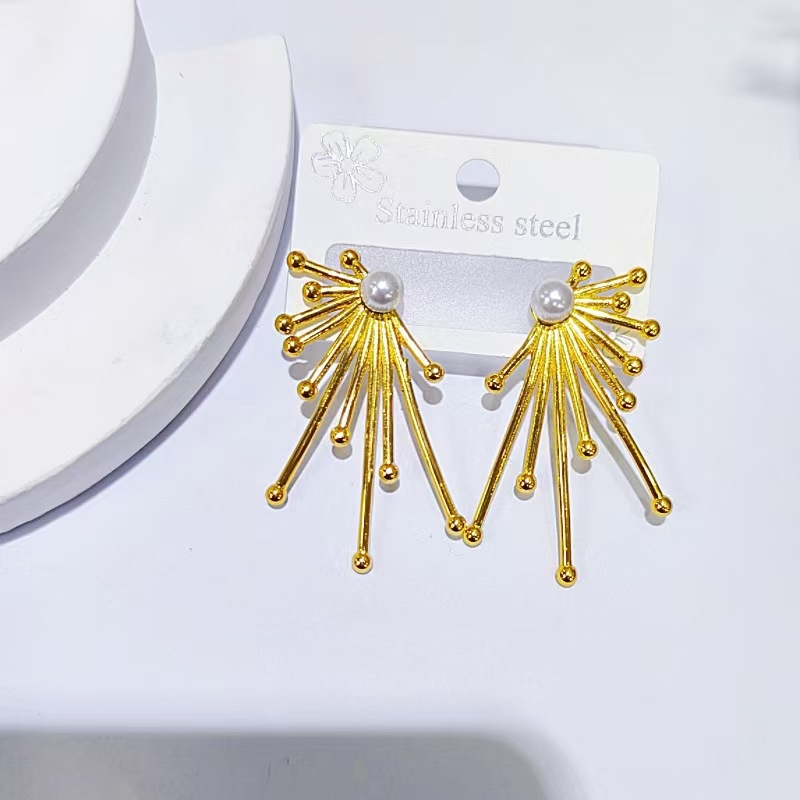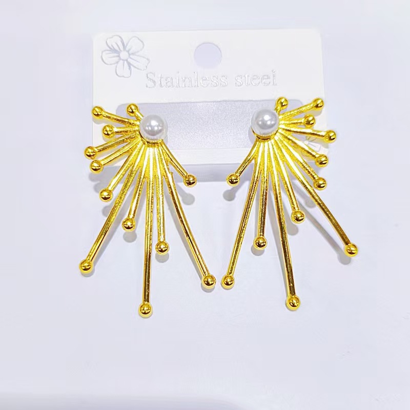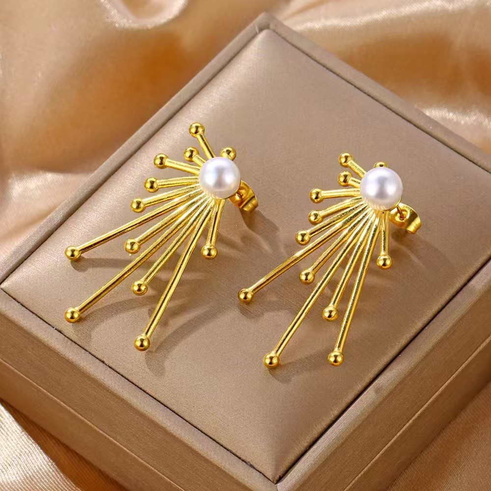 Orecchini in acciaio inossidabile, 304 acciaio inox, with perla in plastica, placcato color oro, gioielli di moda, dorato, Venduto da coppia