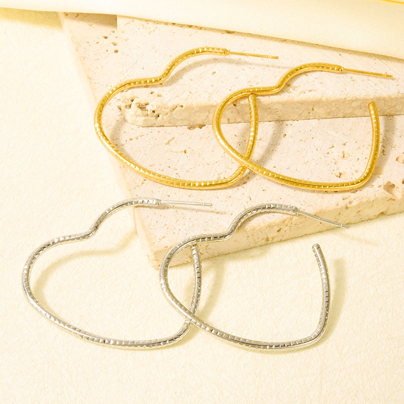 Orecchini in acciaio inossidabile, 304 acciaio inox, Cuore, placcato, gioielli di moda, nessuno, 36x45.20mm, Venduto da coppia