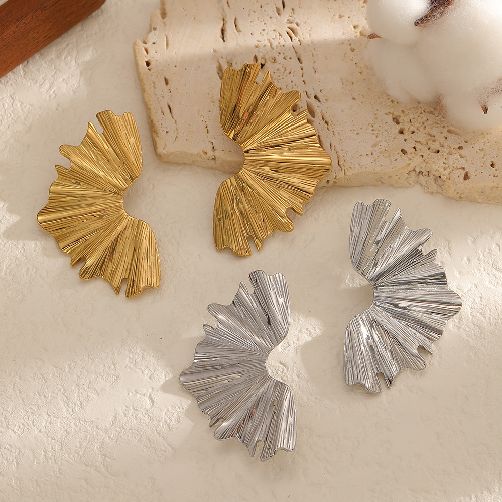 Orecchini in acciaio inossidabile, 304 acciaio inox, Foglia di Ginkgo, placcato, gioielli di moda & per la donna, dorato, Venduto da coppia