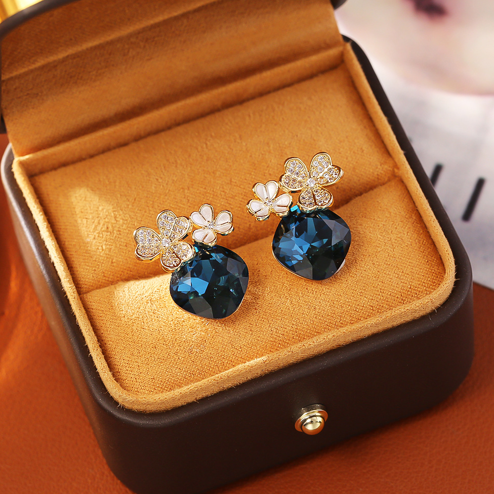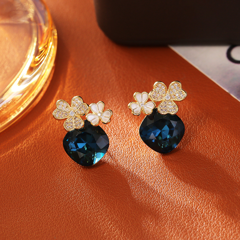 Orecchini in cristallo, ottone, with cristallo, placcato oro vero, gioielli di moda & Micro spianare cubic zirconia & per la donna, Venduto da coppia