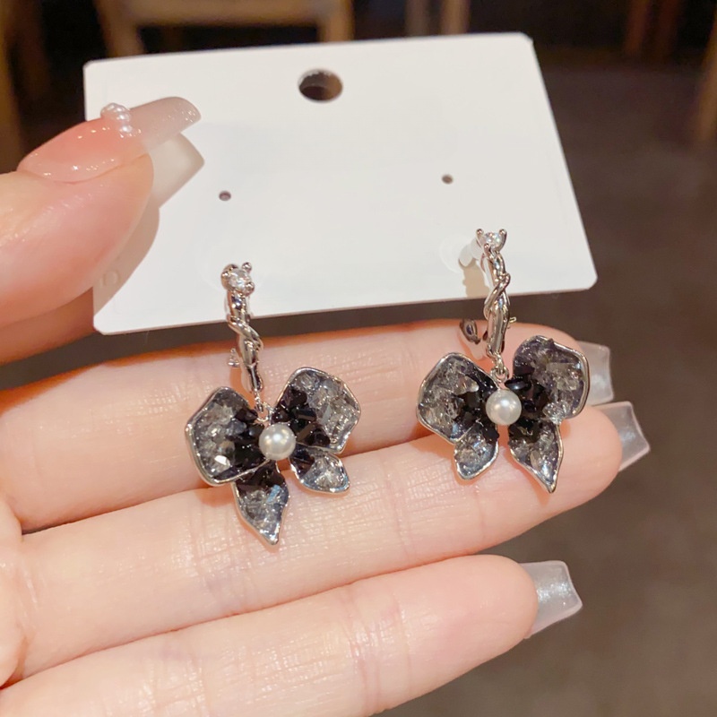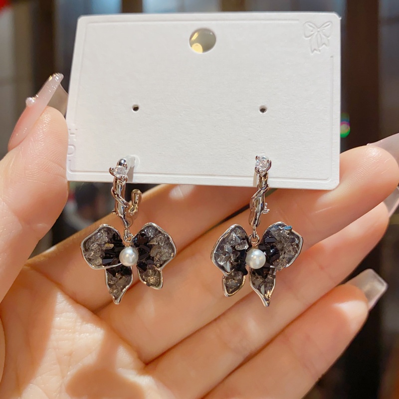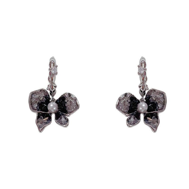 Orecchini in cristallo, ottone, with cristallo & perla in plastica, Farfalla, placcato, gioielli di moda & Micro spianare cubic zirconia & per la donna, argento, 31x19mm, Venduto da coppia