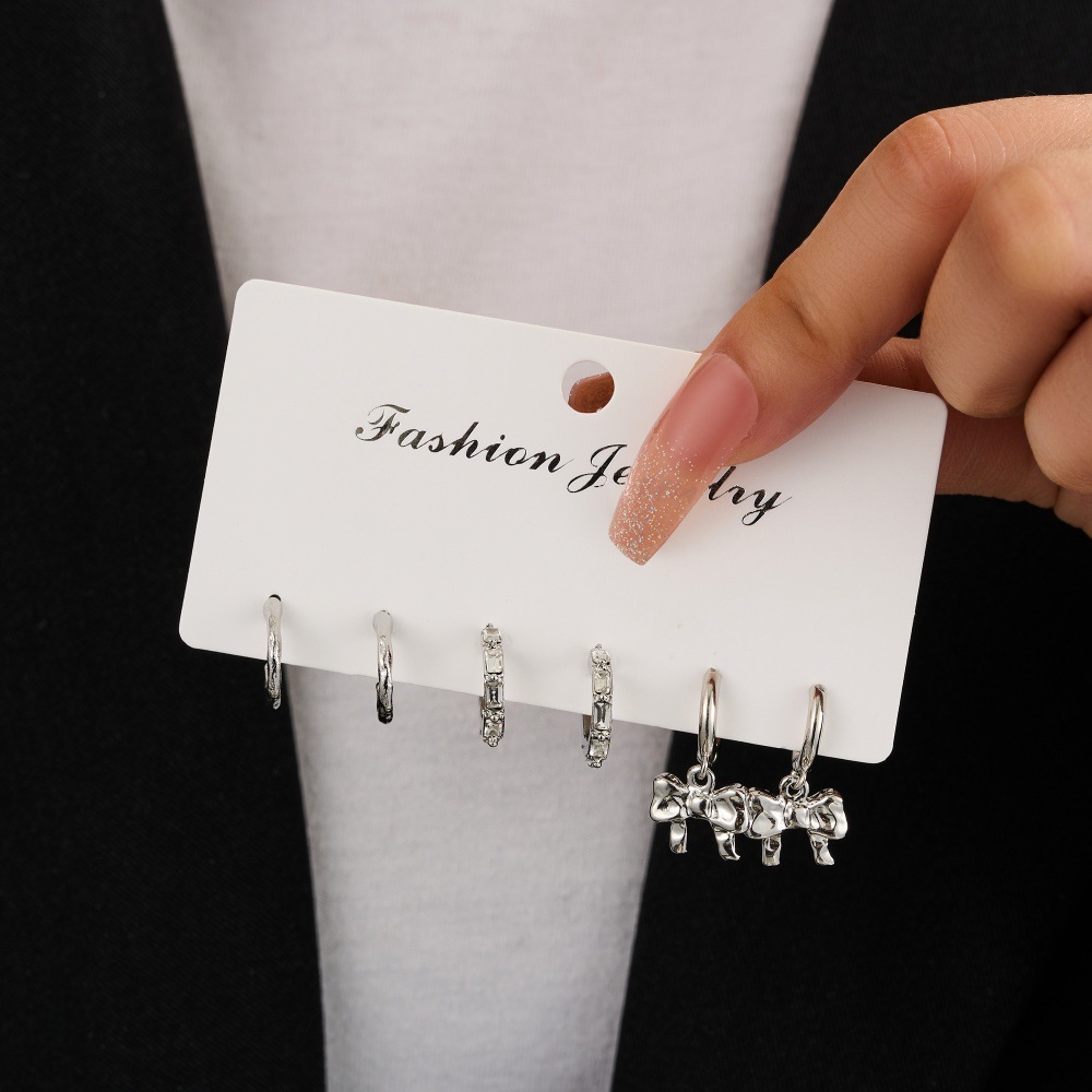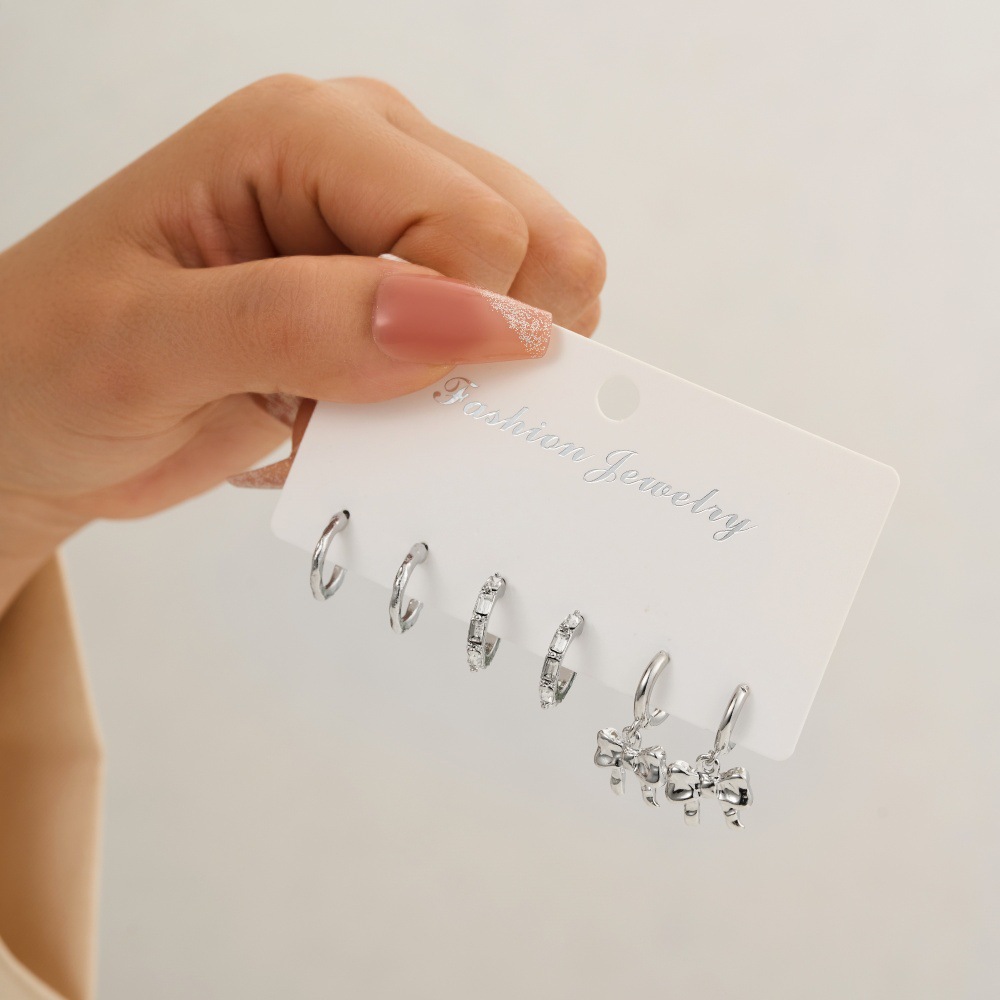 Orecchini in lega di zinco, lega in zinco, placcato color oro, gioielli di moda, argento, 6PC/set, Venduto da set