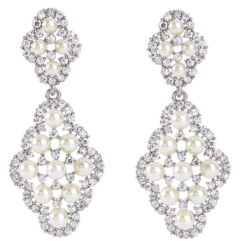 Orecchini in lega di zinco, lega in zinco, with perla in plastica, placcato, per la donna & con strass & cavo, Venduto da coppia