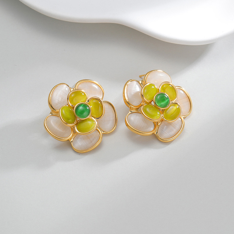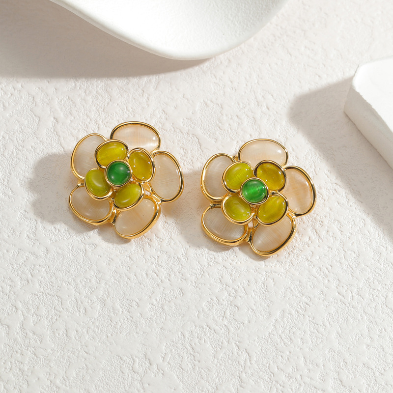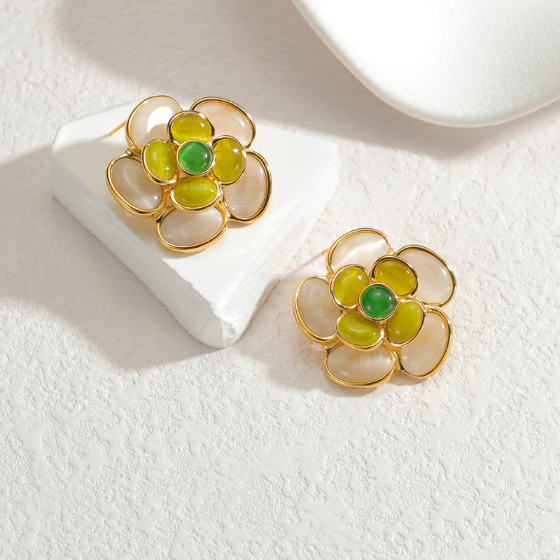 Orecchini in resina, 304 acciaio inox, with resina, Fiore, placcato, gioielli di moda & per la donna, dorato, Venduto da coppia