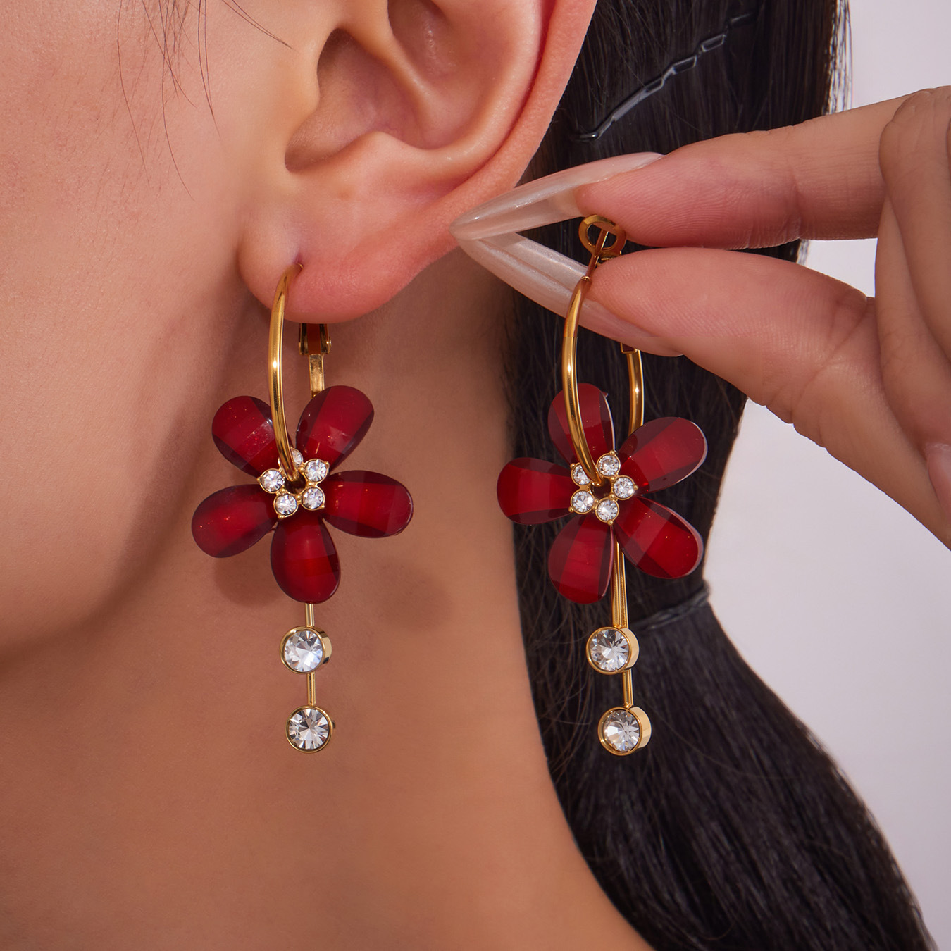 resina orecchini a goccia, with 304 acciaio inox, Petali, gioielli di moda & per la donna, nessuno, 25x70mm, Venduto da coppia