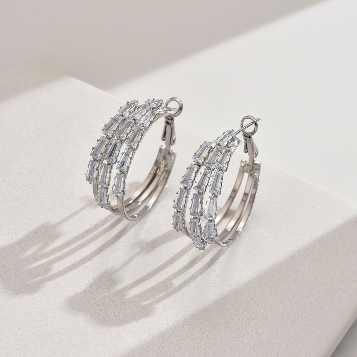 Orecchini in strass, lega in zinco, with vetro, placcato color argento, gioielli di moda & con strass, argento, Venduto da coppia