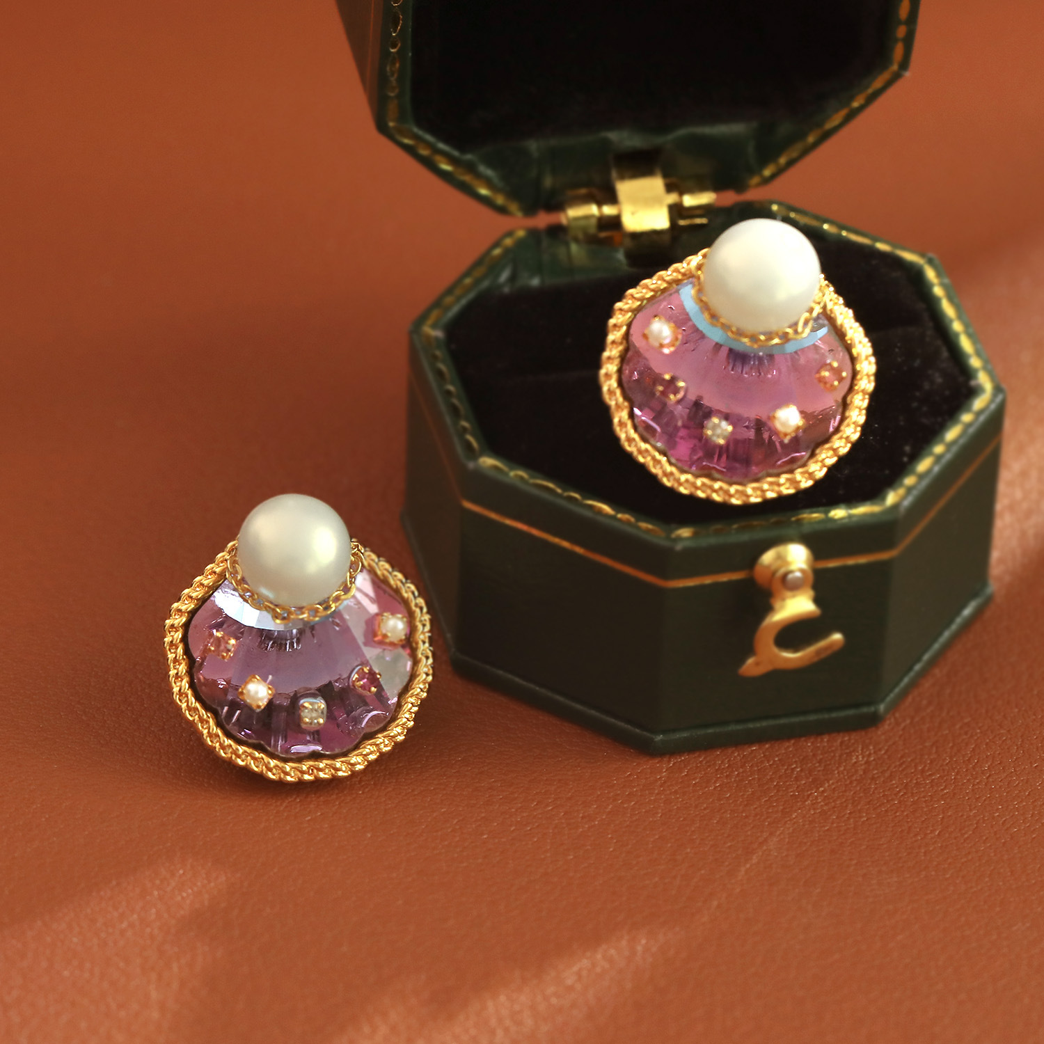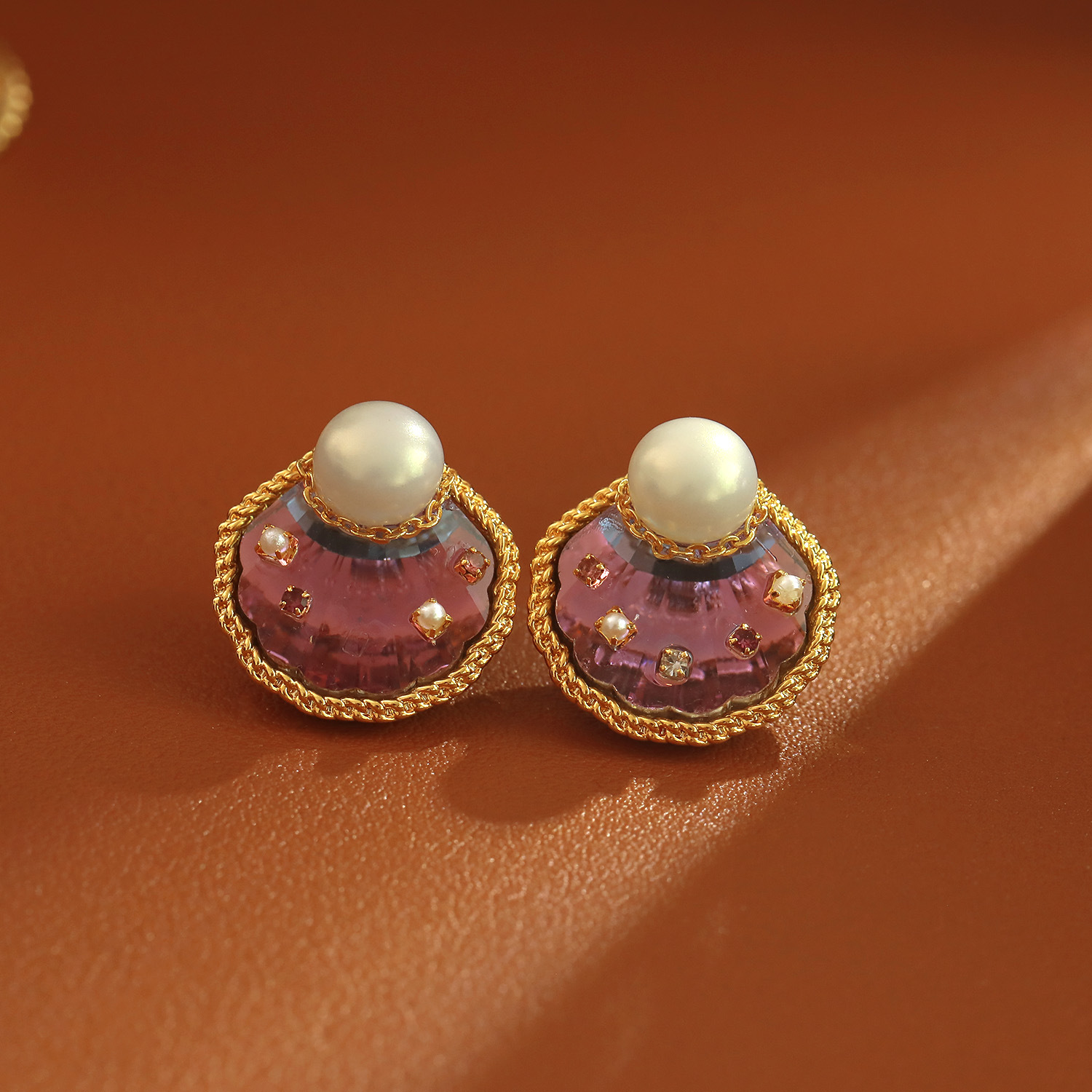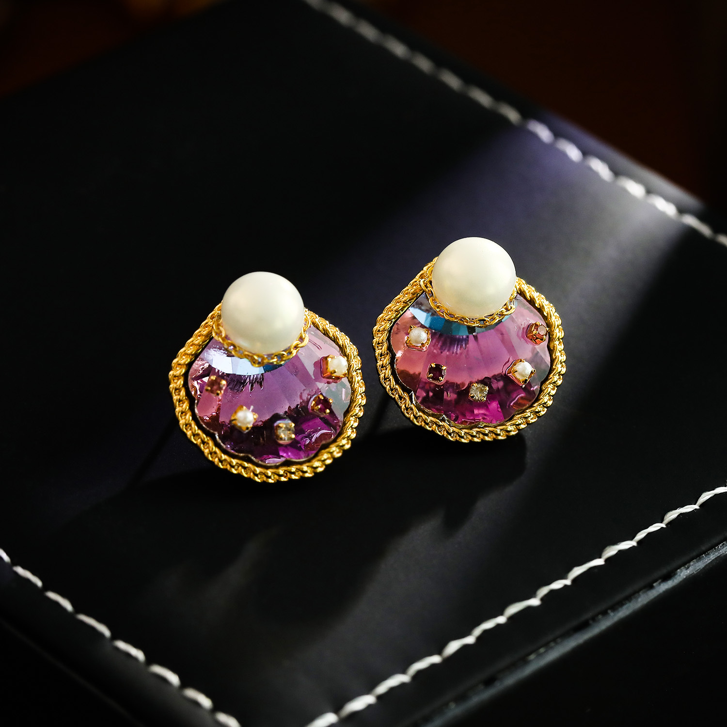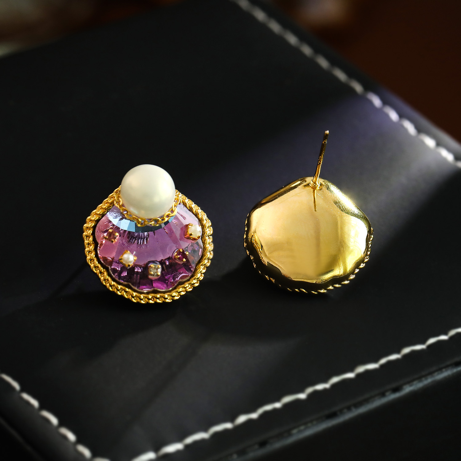 Orecchini perle d'acquadolci , ottone, with perla d'acquadolce coltivata naturalmente & cristallo, Placcato oro 18K, gioielli di moda & per la donna, 19x20mm, Venduto da coppia