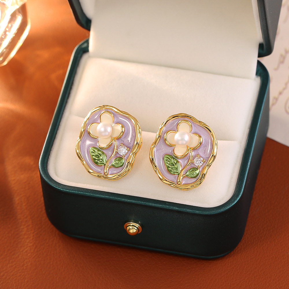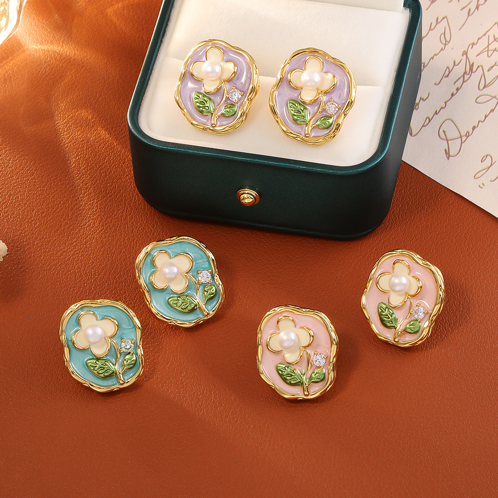 Orecchini perle d'acquadolci , ottone, with perla d'acquadolce coltivata naturalmente, placcato oro vero, per la donna & smalto & con strass, nessuno, Venduto da coppia