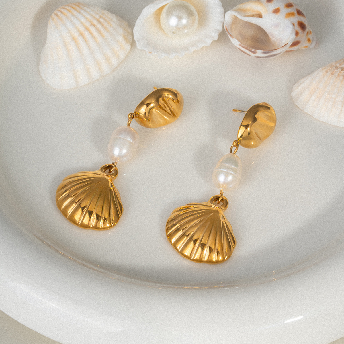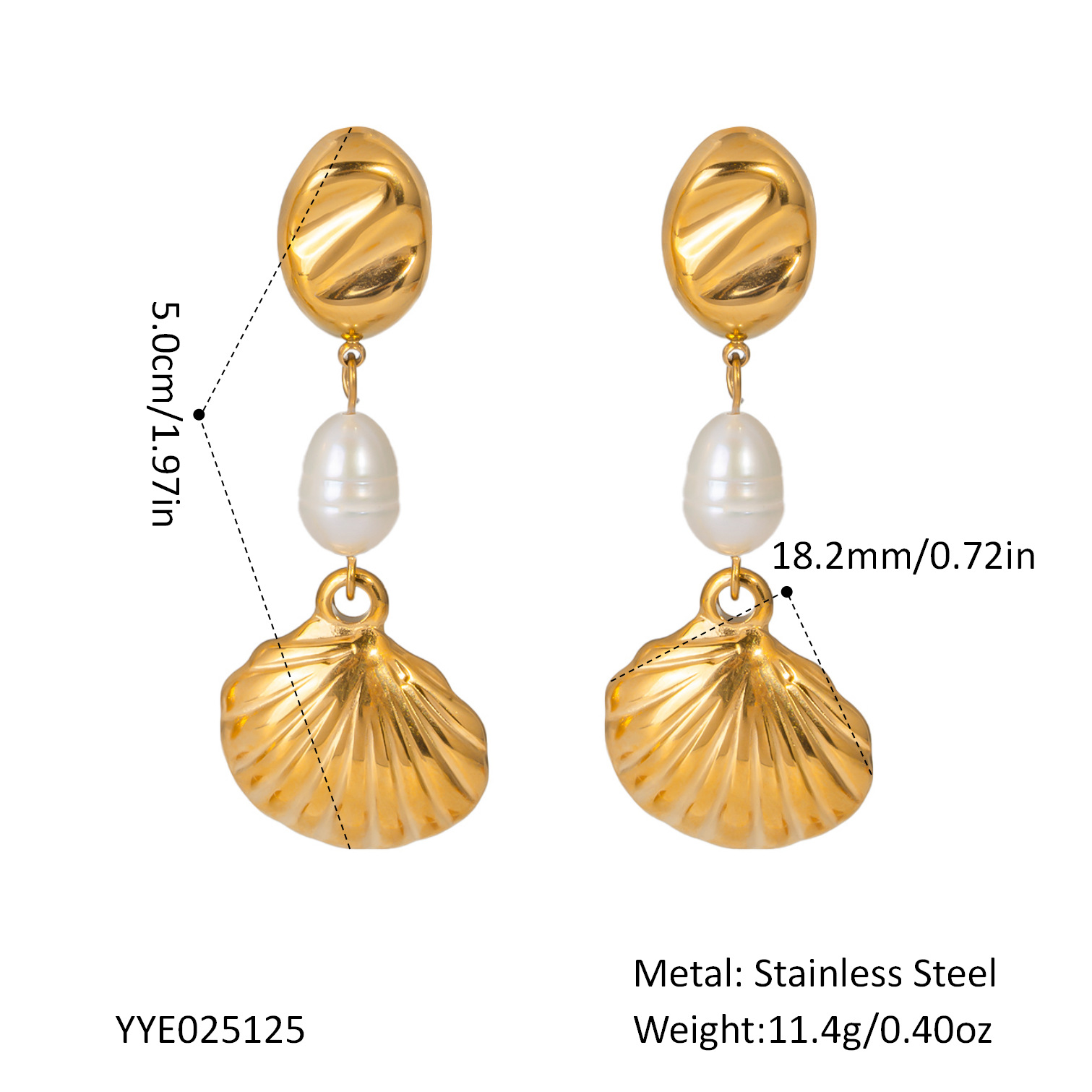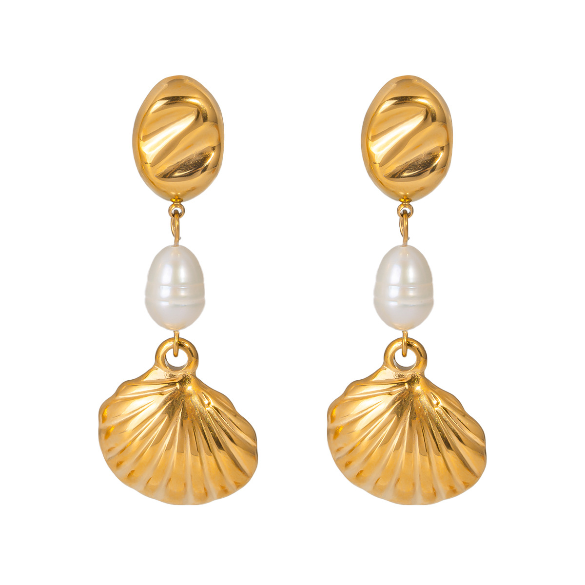 Orecchino di goccia in acciaio inox, 304 acciaio inox, with Shell Pearl, gioielli di moda & per la donna, dorato, Venduto da coppia