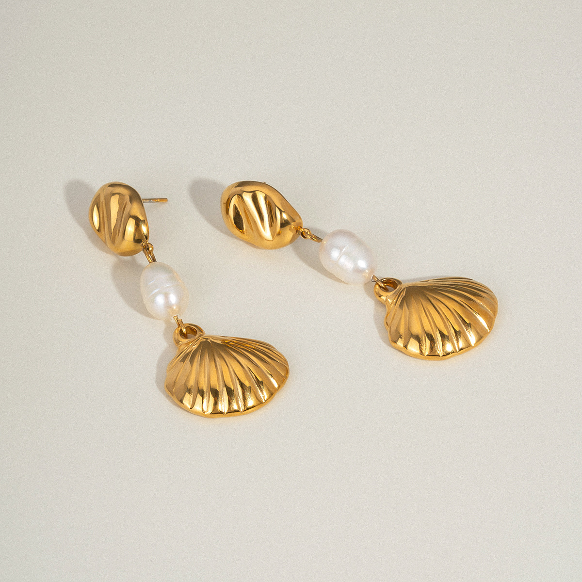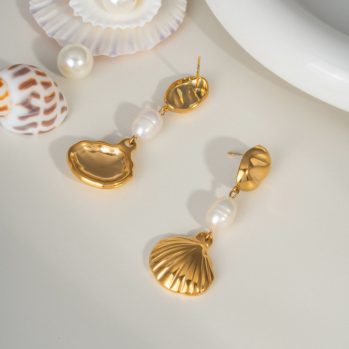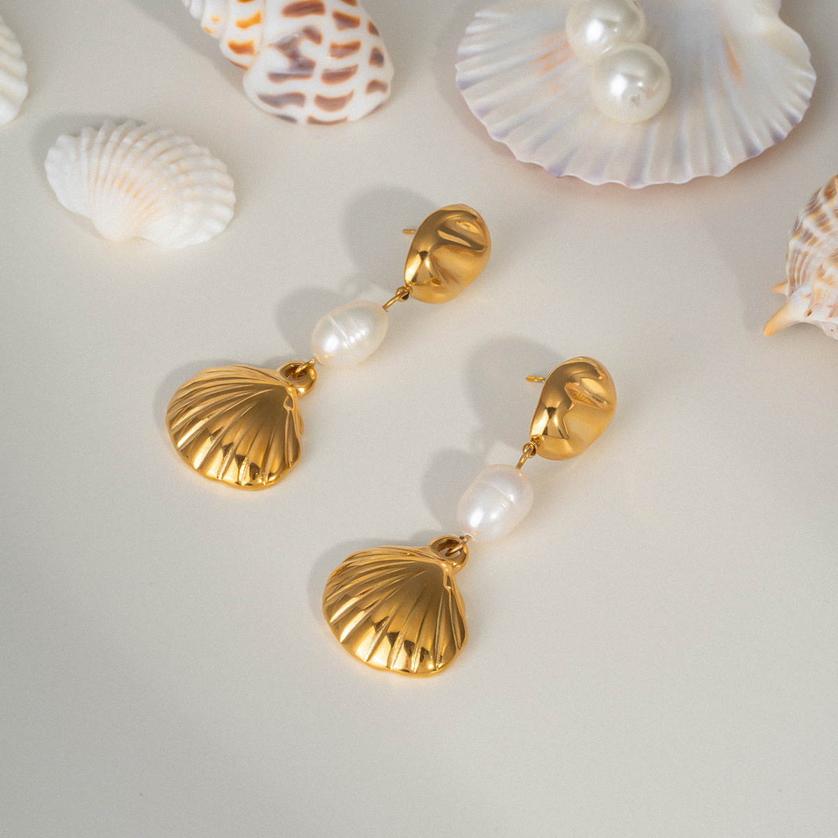 Orecchino di goccia in acciaio inox, 304 acciaio inox, with Shell Pearl, gioielli di moda & per la donna, dorato, Venduto da coppia