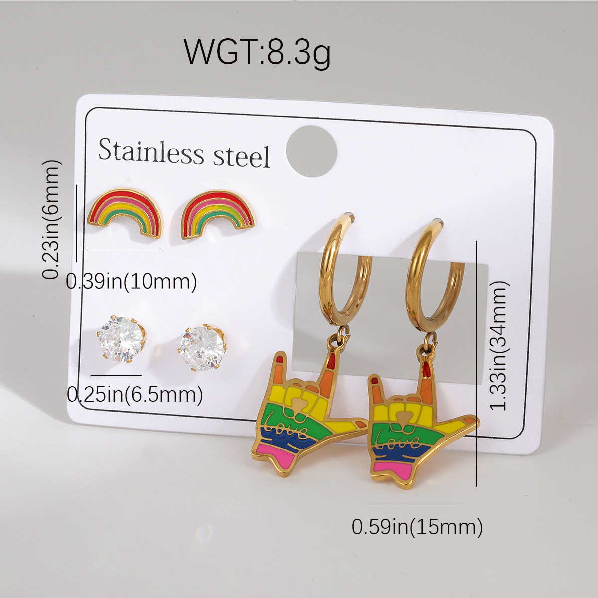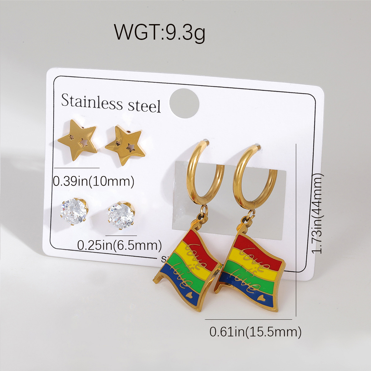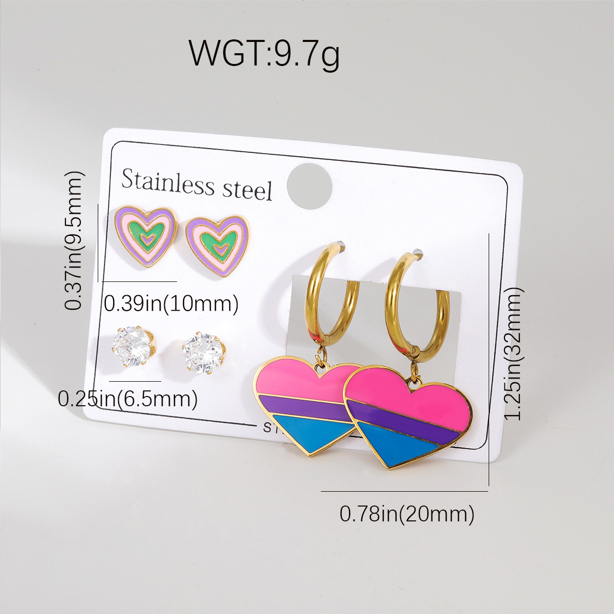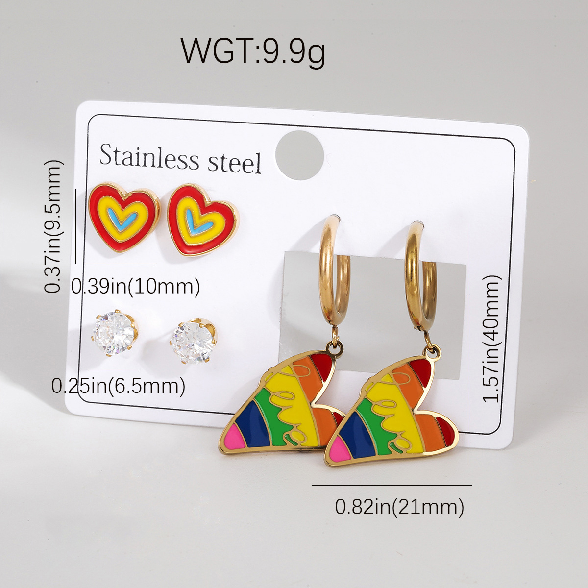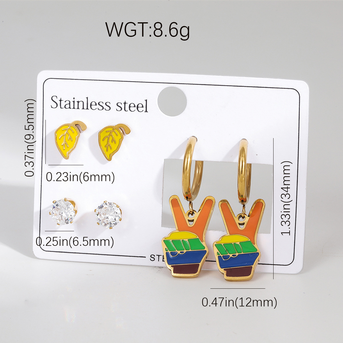 Orecchino di goccia in acciaio inox, 304 acciaio inox, placcato, tre pezzi & stili diversi per la scelta & per la donna & smalto & con strass, dorato, Venduto da set