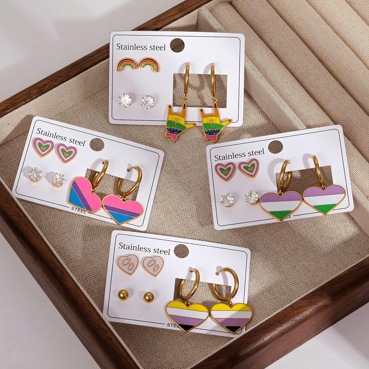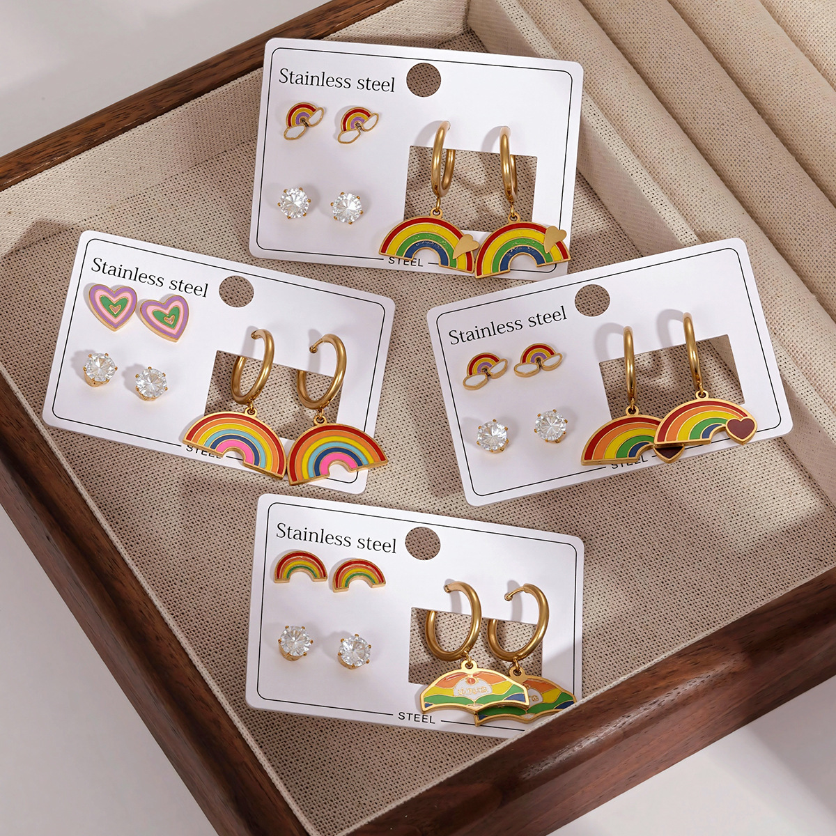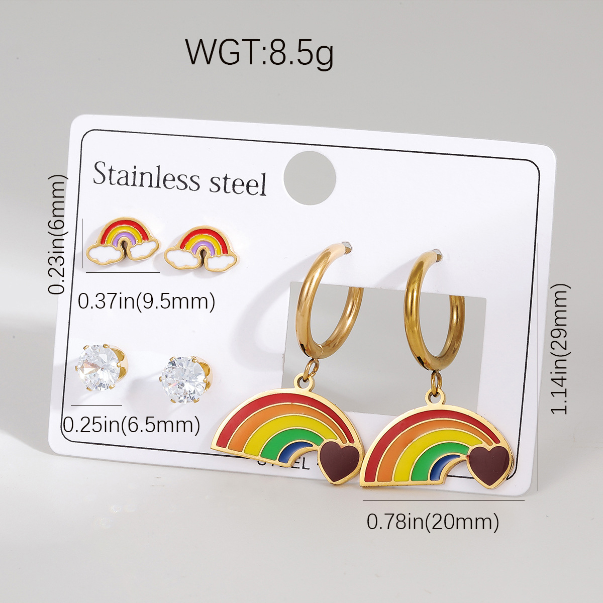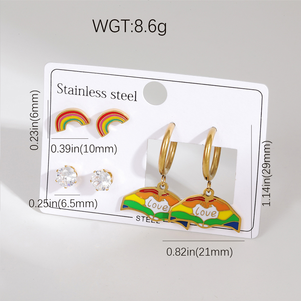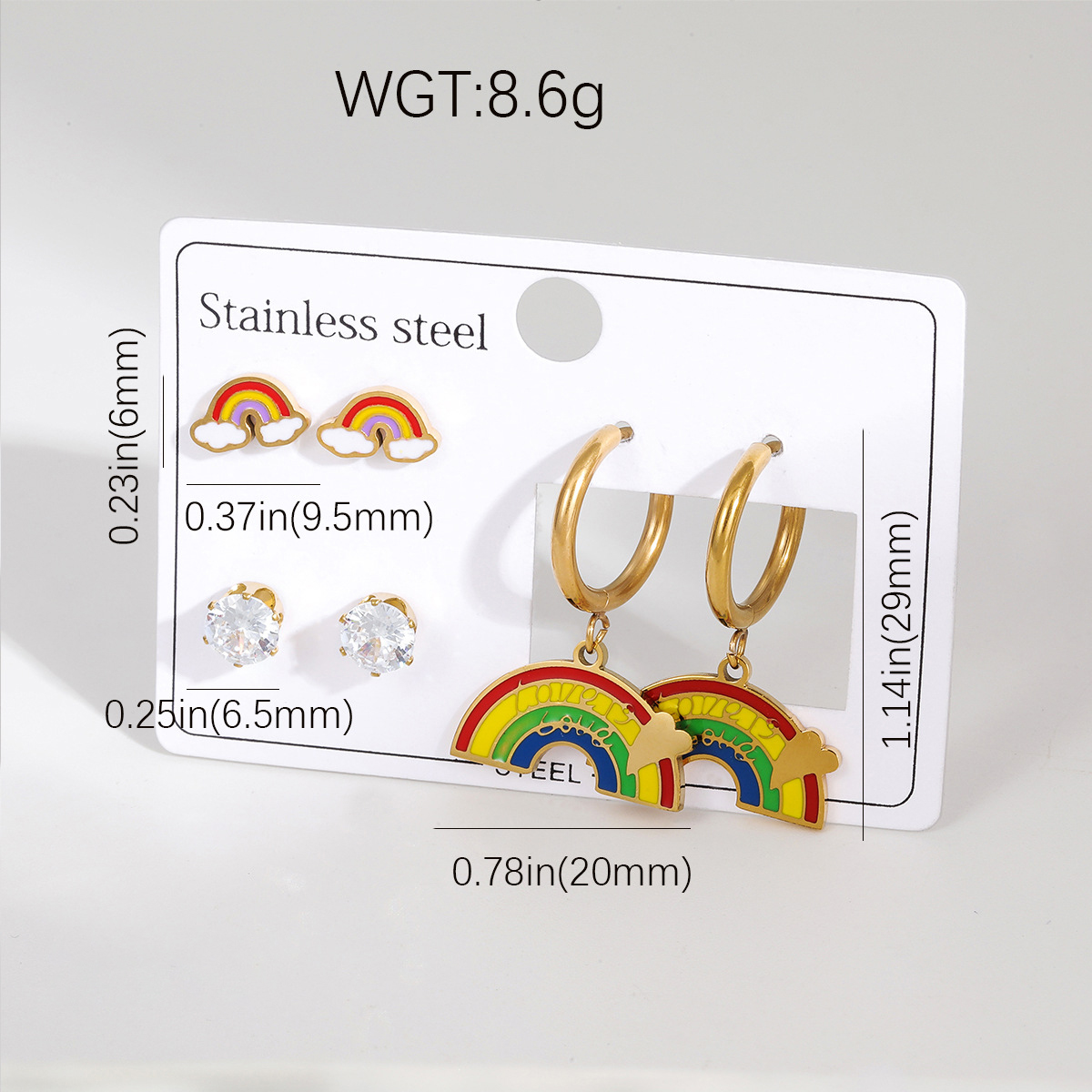 Orecchino di goccia in acciaio inox, 304 acciaio inox, placcato, tre pezzi & stili diversi per la scelta & per la donna & smalto & con strass, dorato, Venduto da set