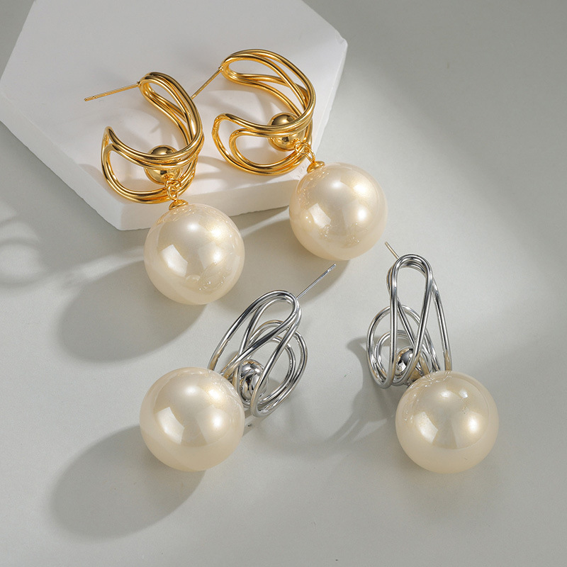 Orecchino di goccia in acciaio inox, 304 acciaio inox, with perla in plastica, placcato, gioielli di moda & per la donna & cavo, nessuno, Venduto da coppia