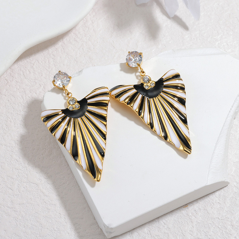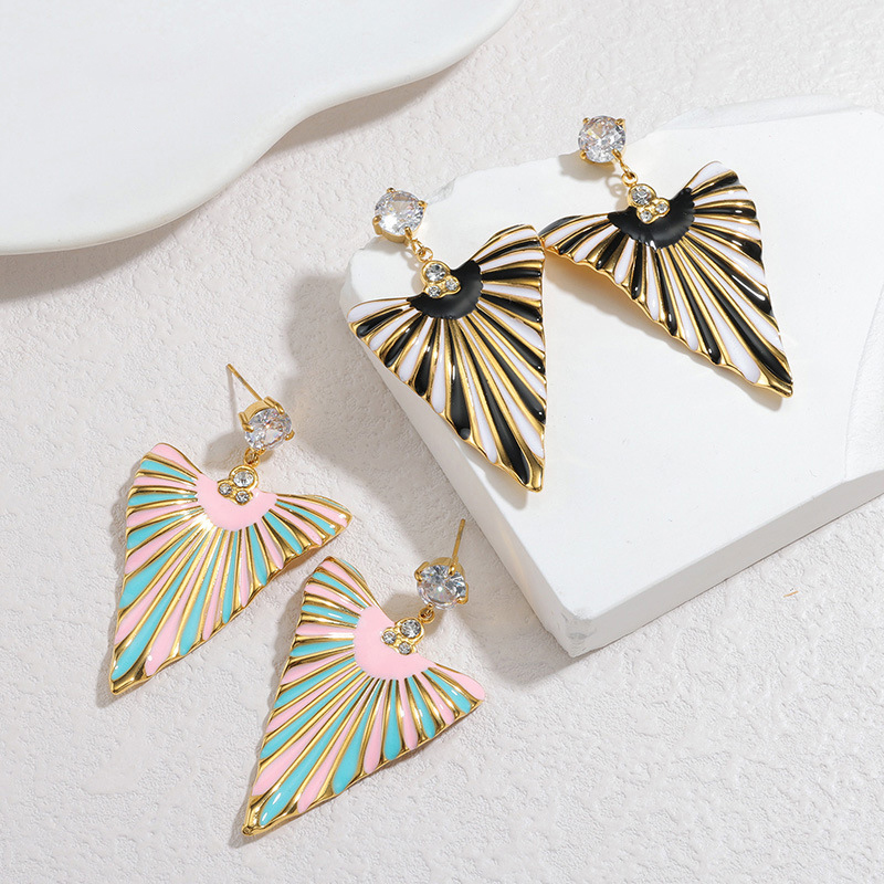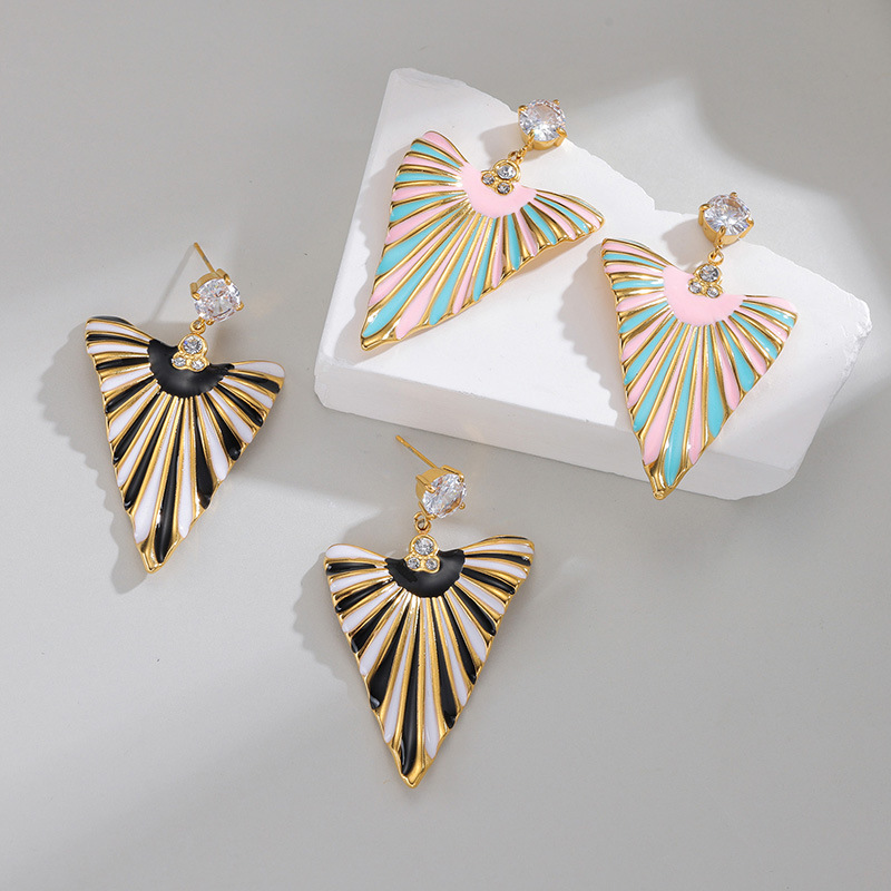Orecchino di goccia in acciaio inox, 304 acciaio inox, Triangolo, placcato color oro, Micro spianare cubic zirconia & per la donna & smalto, nessuno, Venduto da coppia