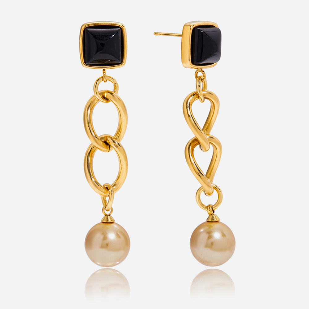 Orecchino di goccia in acciaio inox, 304 acciaio inox, with Pietra naturale & perla in plastica, placcato color oro, per la donna, Venduto da coppia