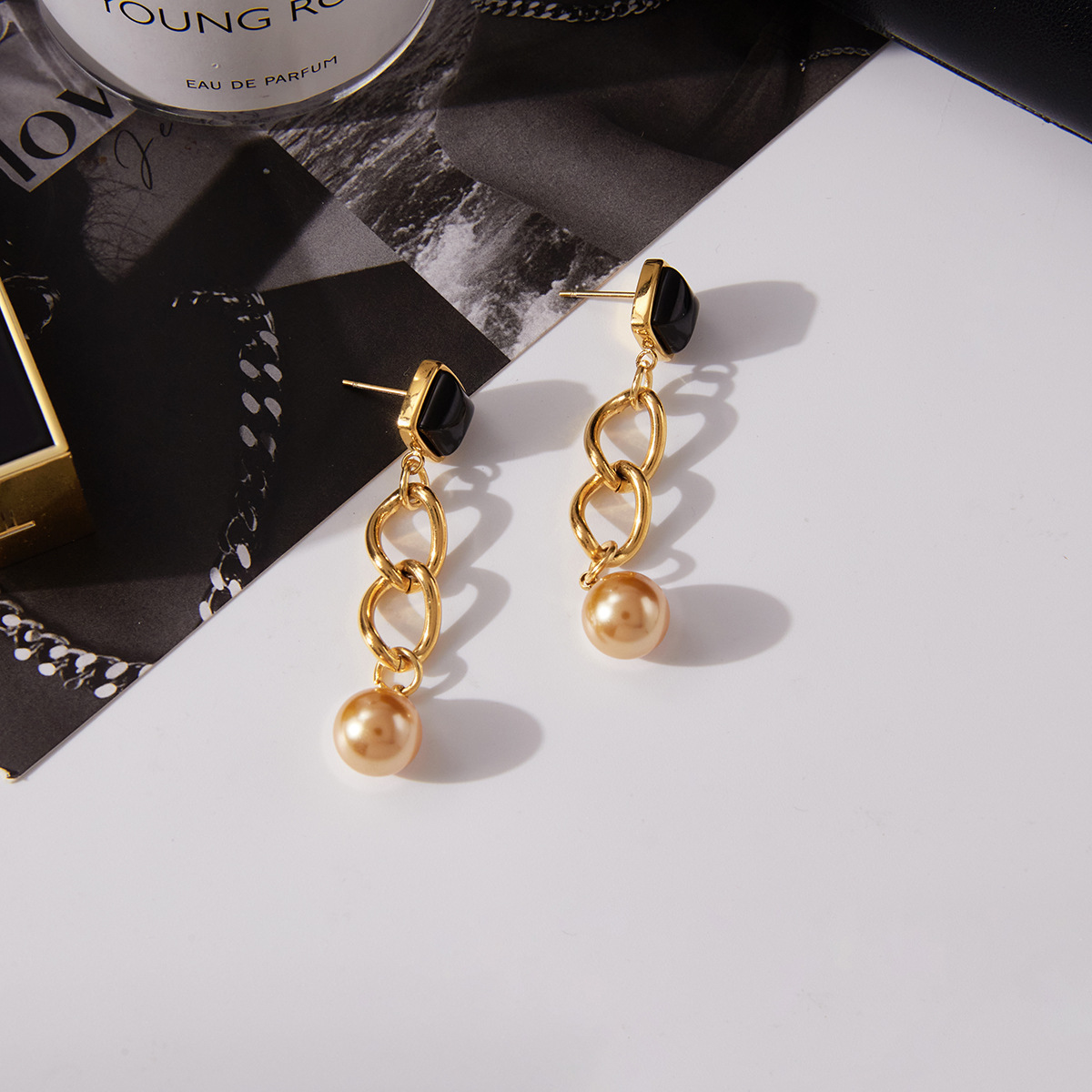 Orecchino di goccia in acciaio inox, 304 acciaio inox, with perla in vetro & resina, Placcato oro 18K, gioielli di moda & per la donna & cavo, Venduto da coppia