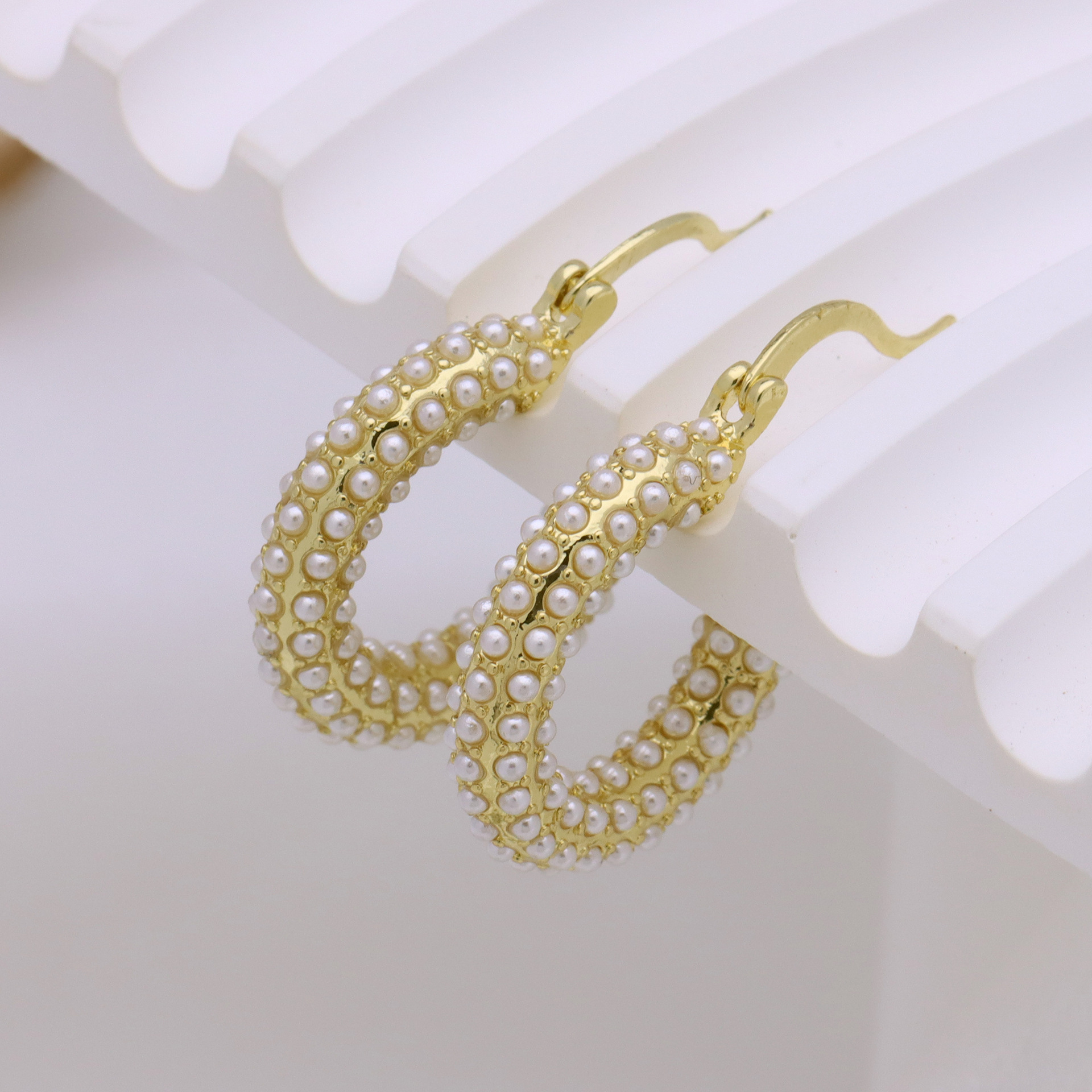 Ottone Leverback Orecchini, with perla in plastica, placcato color oro, per la donna, 23mm, Venduto da coppia