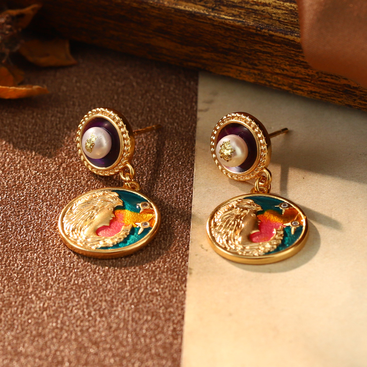 Ottone Orecchino con pendente, with Perle di plastica ABS, placcato, gioielli di moda & smalto, nessuno, assenza di nichel,piombo&cadmio, Venduto da coppia