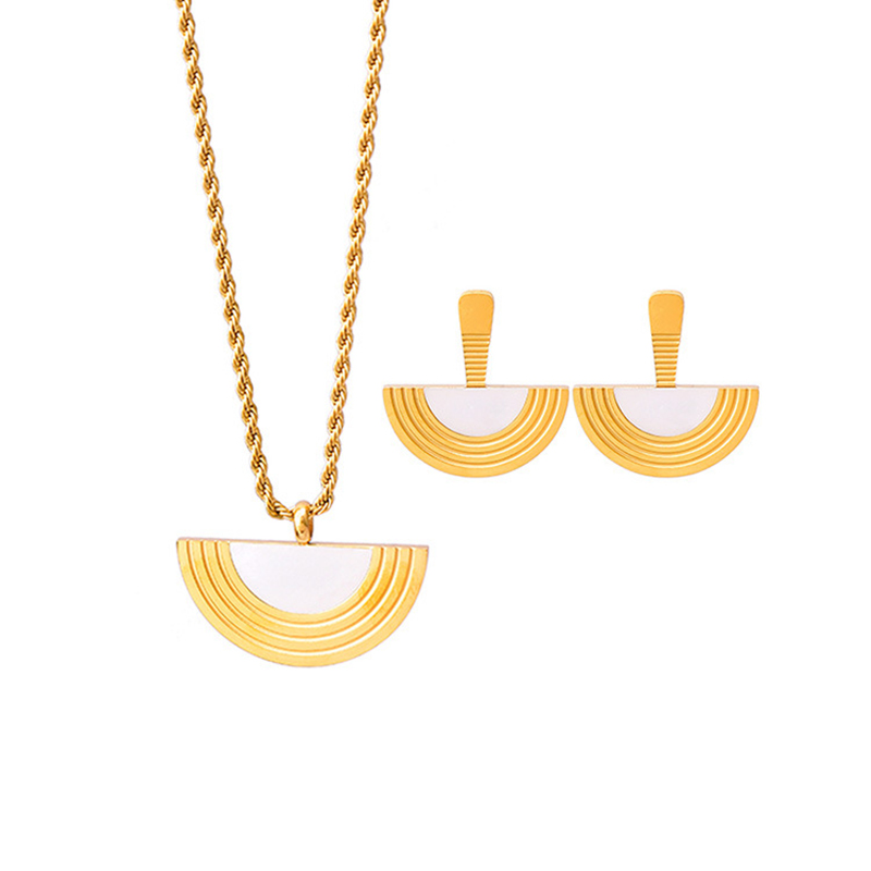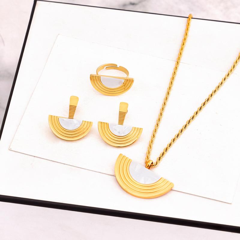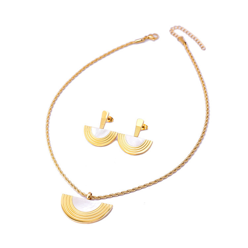Set di gioielli in acciaio inox, Orecchino a bottone & anello dito & Collana, Titantium acciaio, with bianco conchiglia, Ventaglio, placcato, gioielli di moda & stili diversi per la scelta & per la donna, dorato, Necklace :40cm-5cm;Stud earrings :2.5cm., Venduto da set