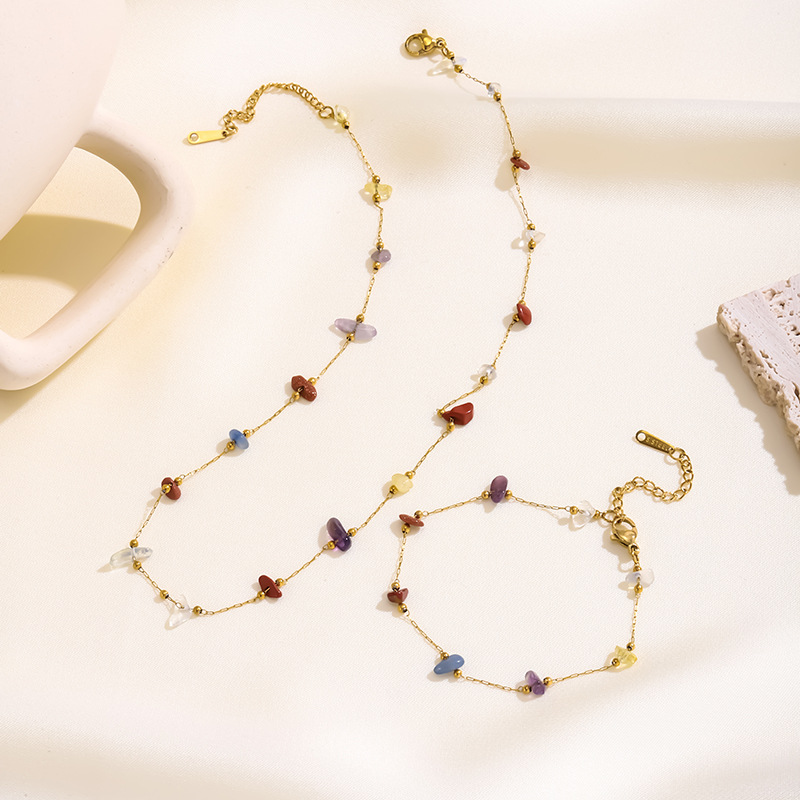 Set di gioielli in acciaio inox, 304 acciaio inox, with pietra preziosa, placcato color oro, gioielli di moda & stili diversi per la scelta & per la donna, multi-colore, Necklace :45cm;Bracelet :16cm., Venduto da PC