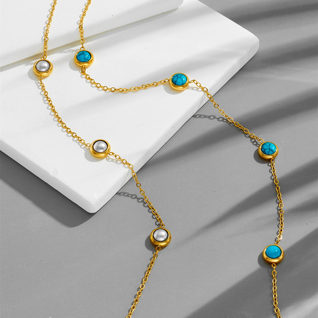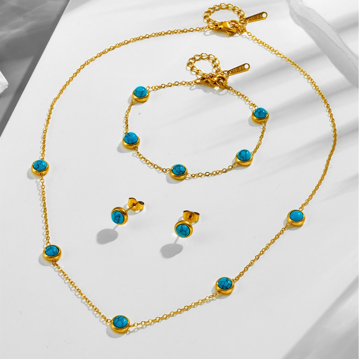 Set di gioielli in acciaio inox, 304 acciaio inox, with turchese, placcato, materiali diversi per la scelta & stili diversi per la scelta & per la donna, dorato, Necklace :45cm;Bracelet :16cm., Venduto da PC