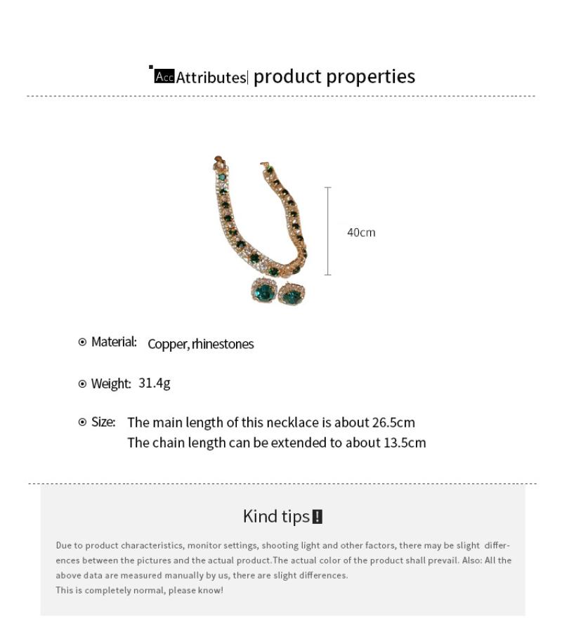 1:Green Diamond 2-piece Set Earrings Necklace2:Black Diamond 2-piece Set Earrings Necklace