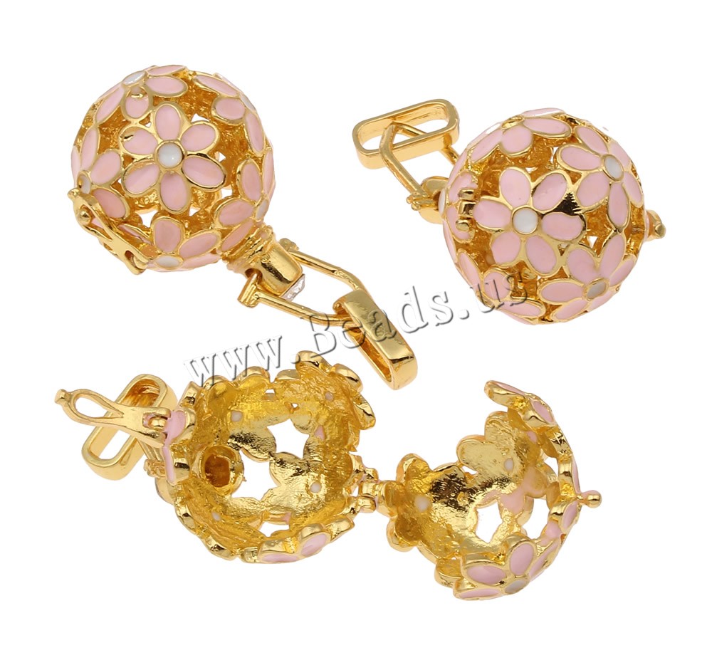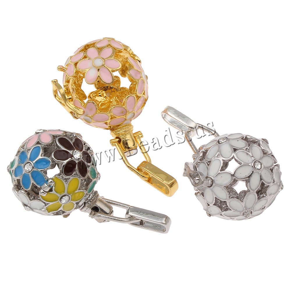 Pendente sfera Bola, ottone, Cerchio, placcato, smalto & con strass & cavo, nessuno, assenza di piombo & cadmio, 23x27x20mm, Foro:Appross. 4x7mm, Venduto da PC