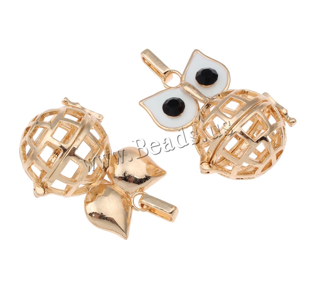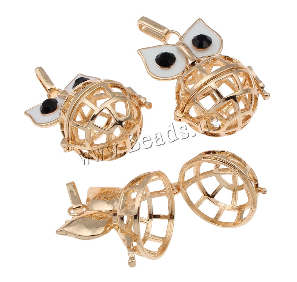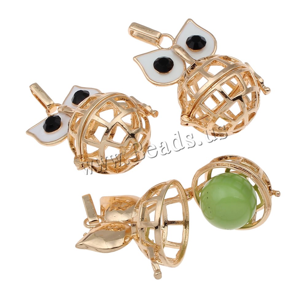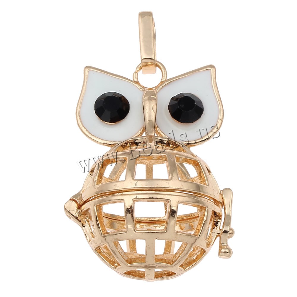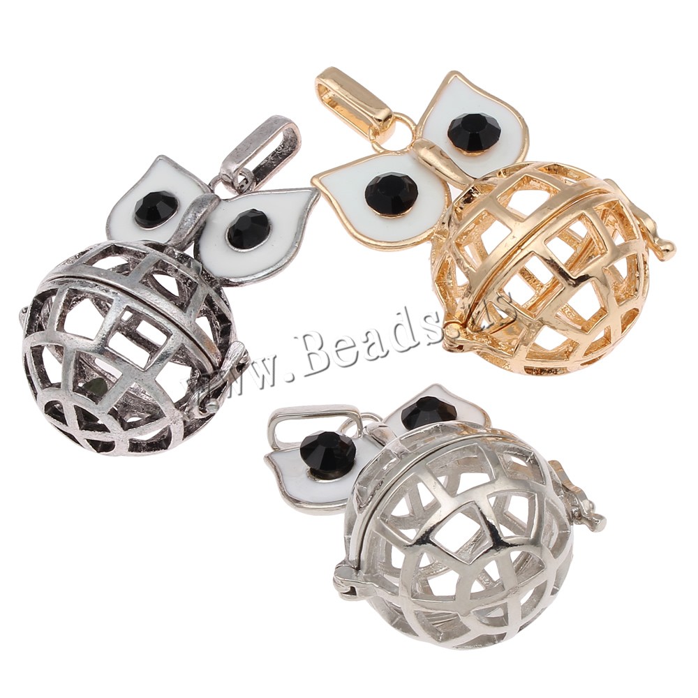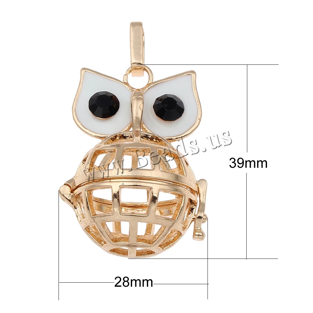 Pendente sfera Bola, ottone, Gufo, placcato, smalto & con strass & cavo, nessuno, assenza di piombo & cadmio, 28x39x24mm, Foro:Appross. 3x8mm, Venduto da PC