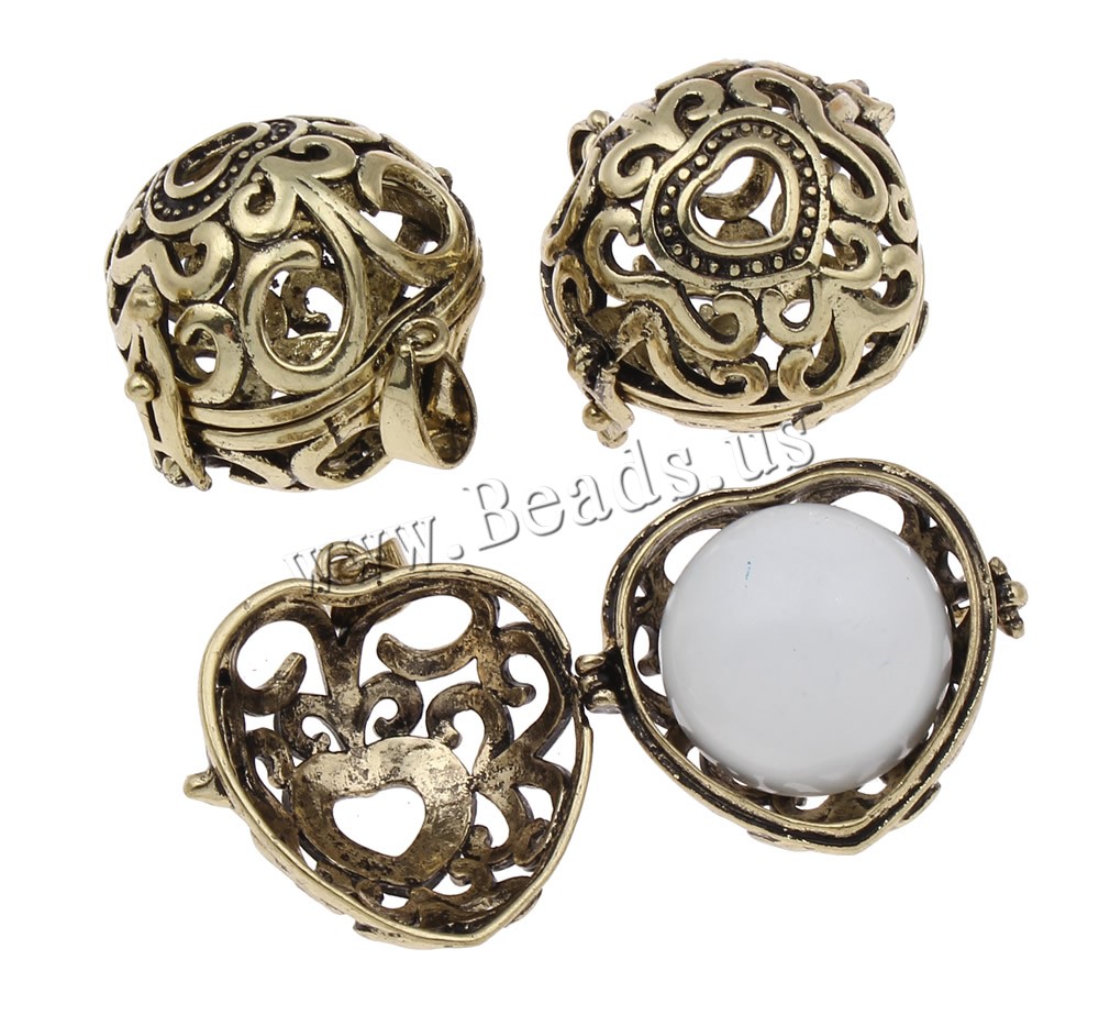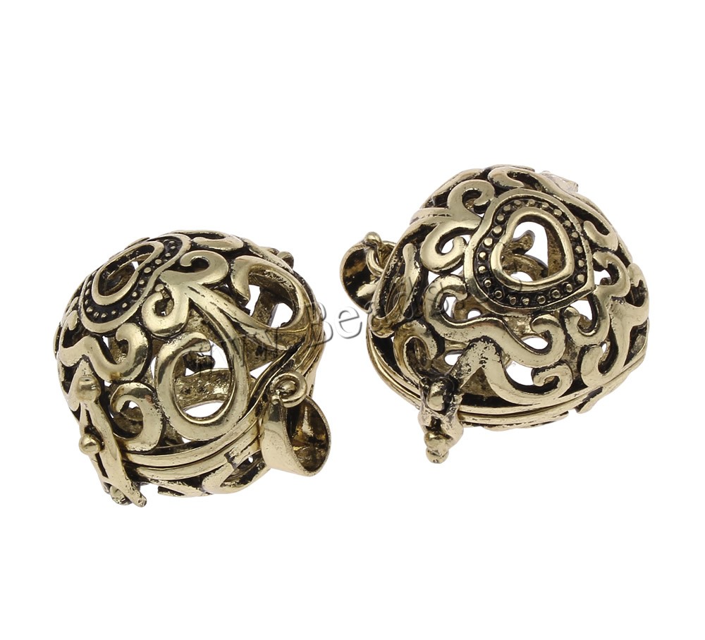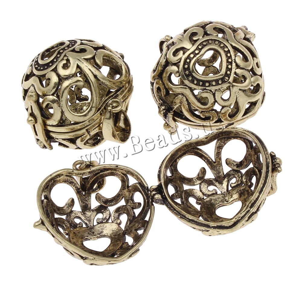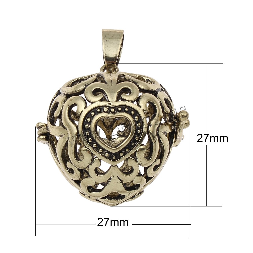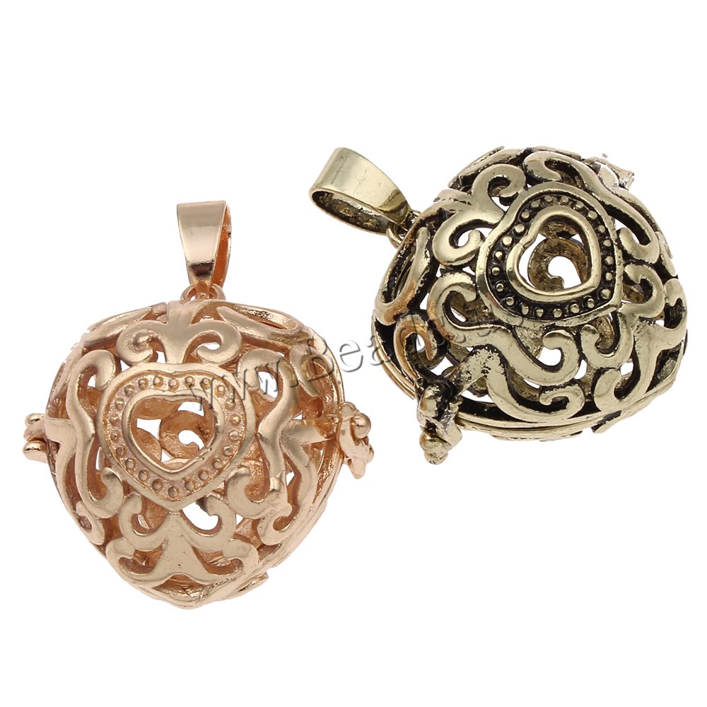 Pendente sfera Bola, ottone, Cuore, placcato, cavo, nessuno, assenza di piombo & cadmio, 27x27x14mm, Foro:Appross. 4x7mm, Venduto da PC