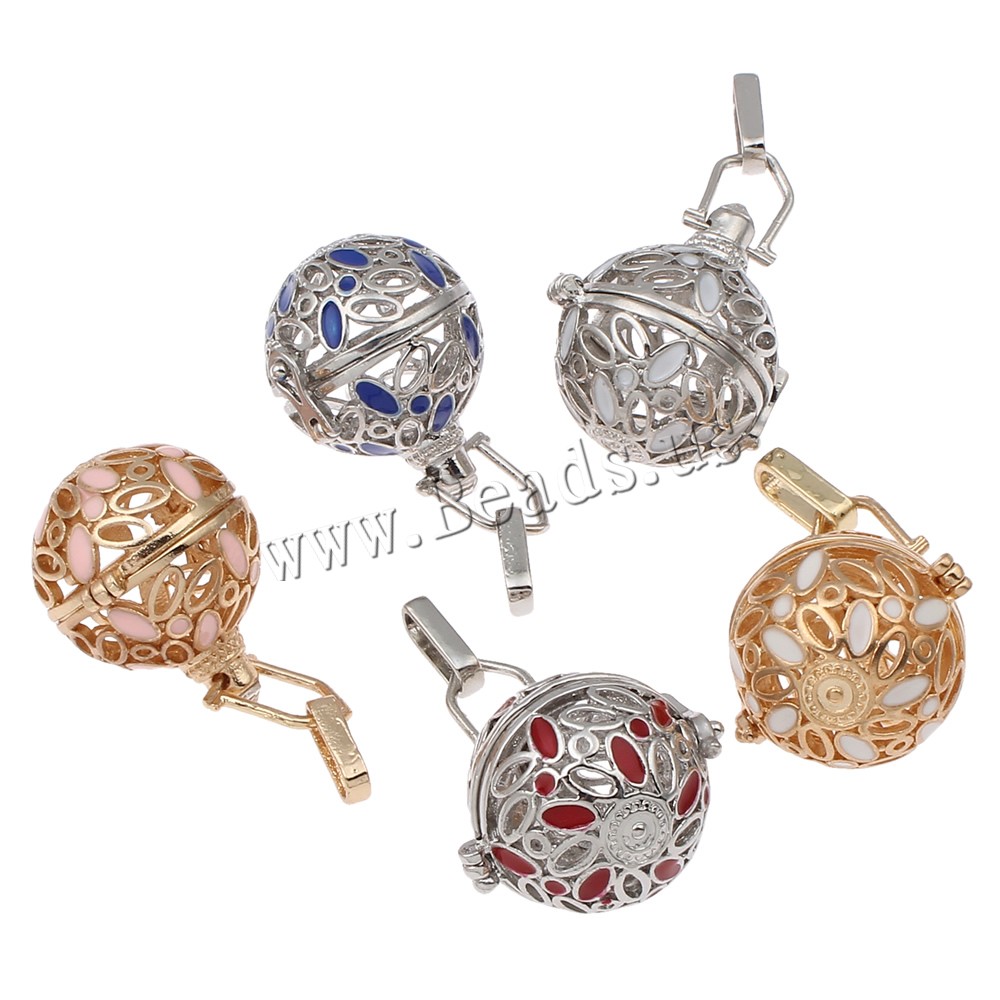 Pendente sfera Bola, ottone, Cerchio, placcato, smalto & cavo, nessuno, assenza di piombo & cadmio, 26x28x22mm, Foro:Appross. 4x7mm, Venduto da PC