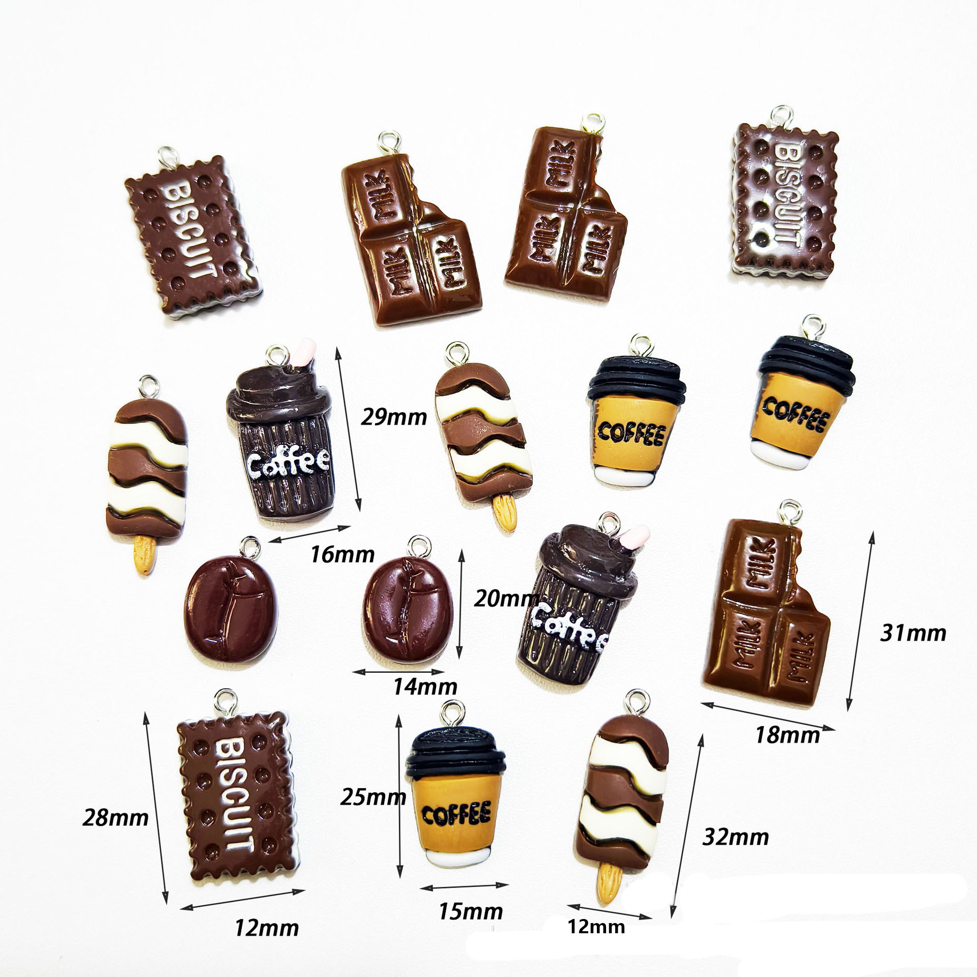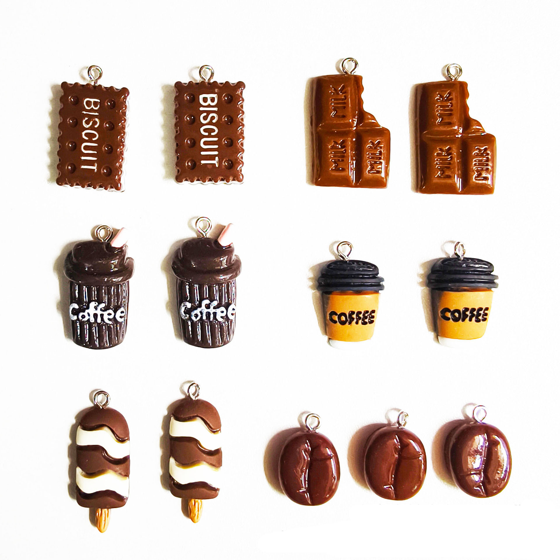 1:Coffee beans2:Large coffee cup3:Small coffee cup4:Chocolate5:Cookie biscuit6:Brown ice cream