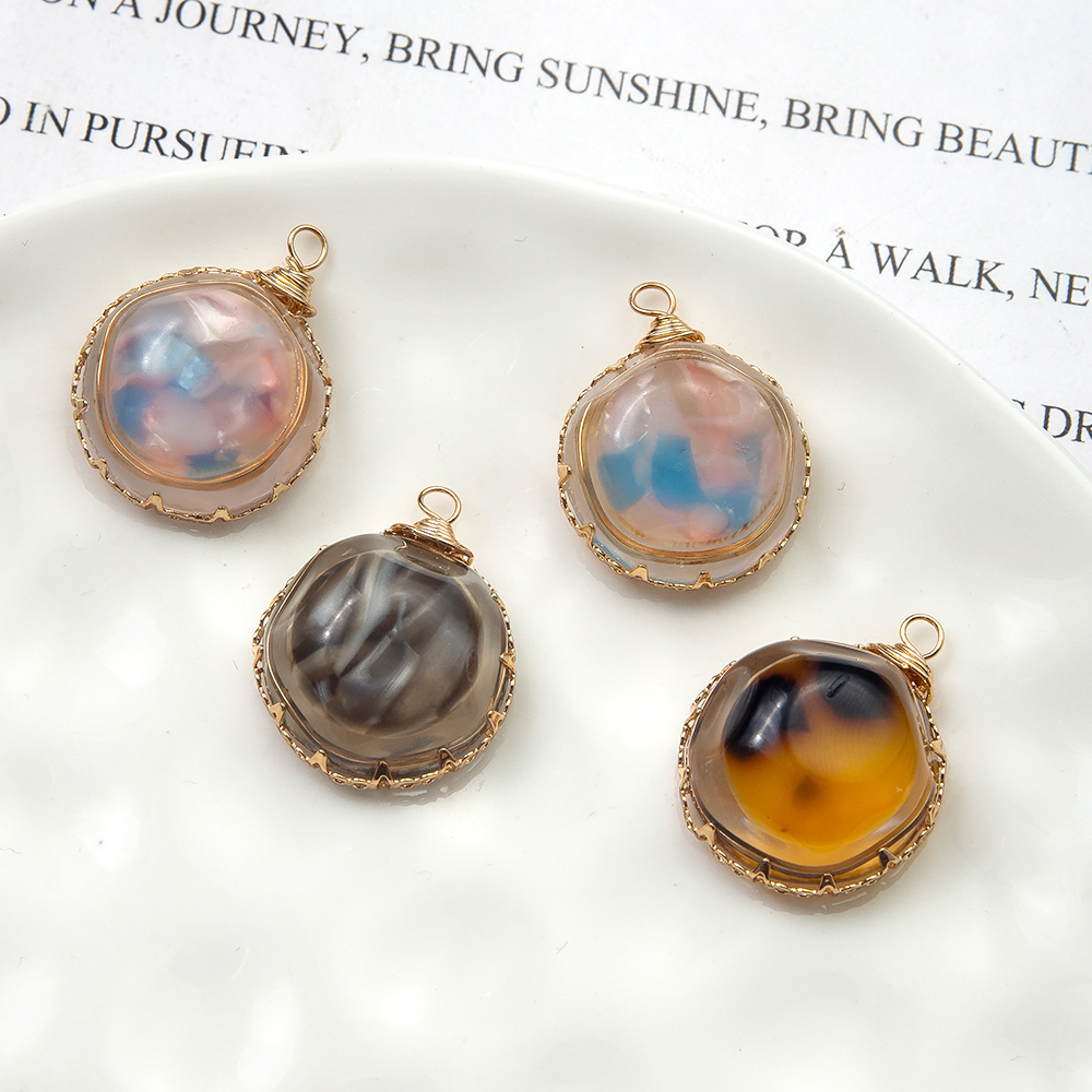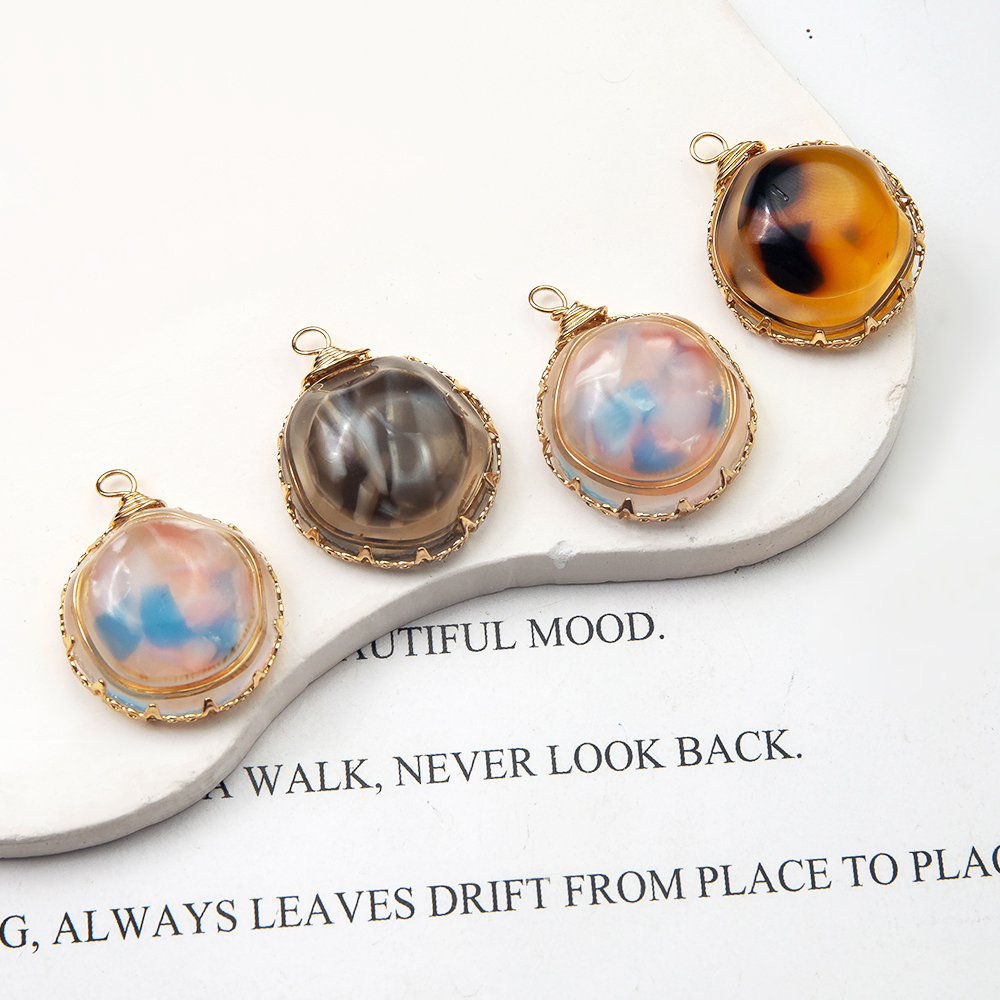 Resina-Pendant, resina, with ottone, Cerchio, DIY, nessuno, 21.50x10.30x27.10mm, Foro:Appross. 1.2mm, Venduto da PC