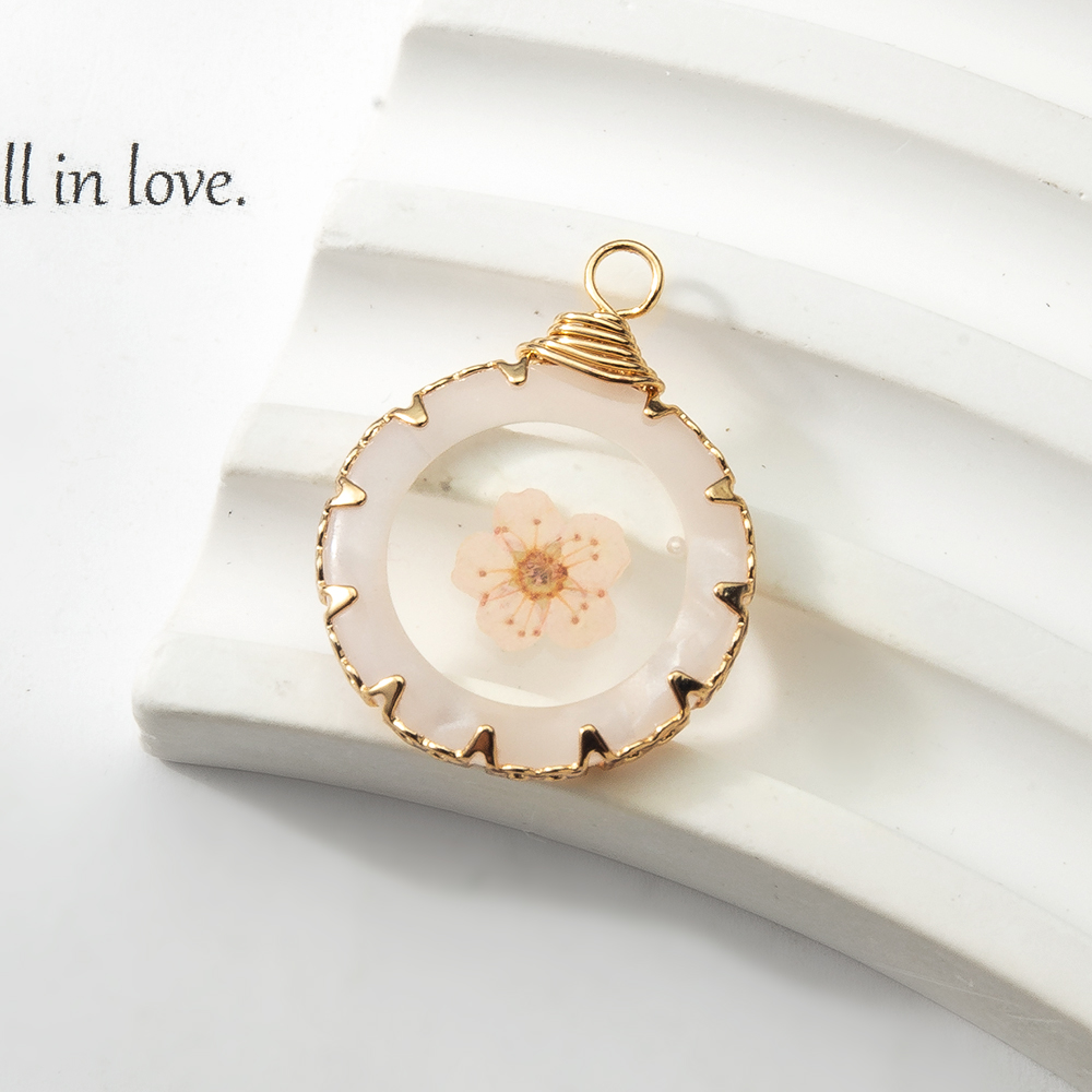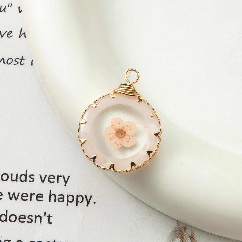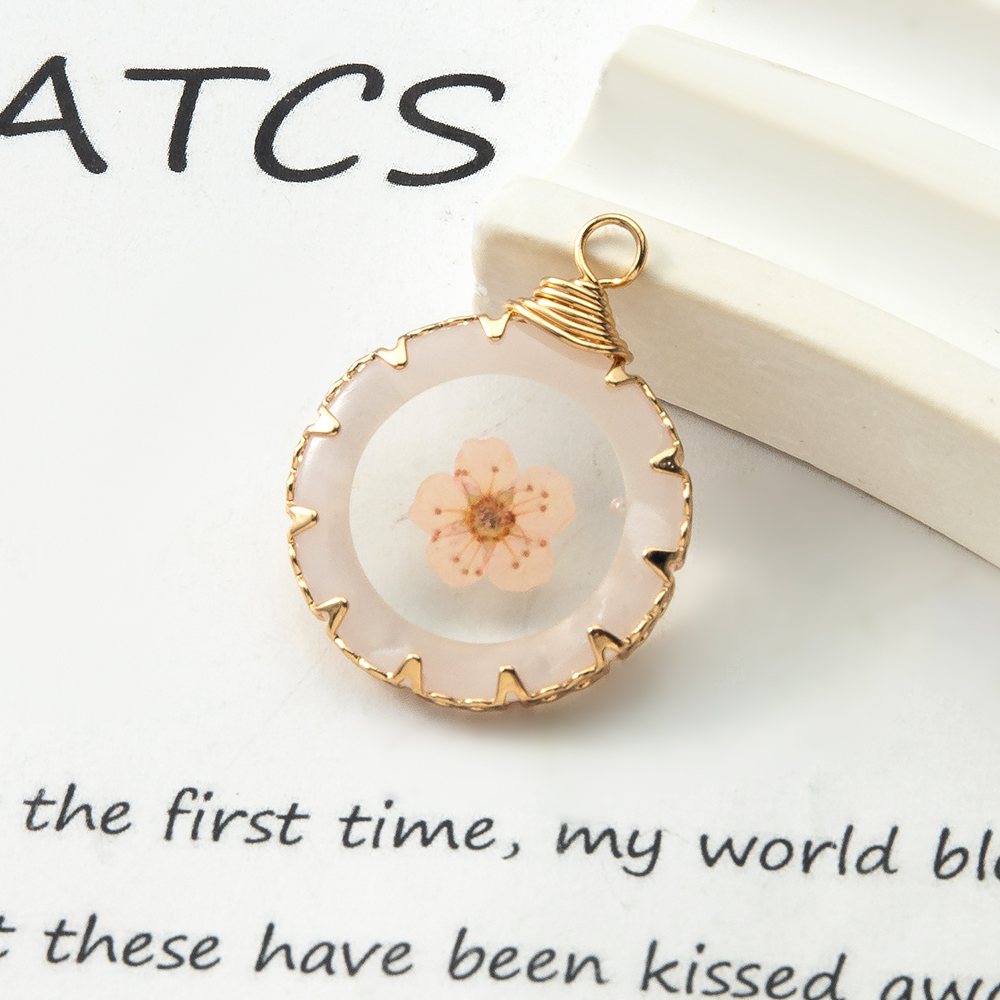 Resina-Pendant, resina, with Fiori secchi & ottone, placcato, DIY, colori misti, 20.60x3.70x26.80mm, Venduto da PC