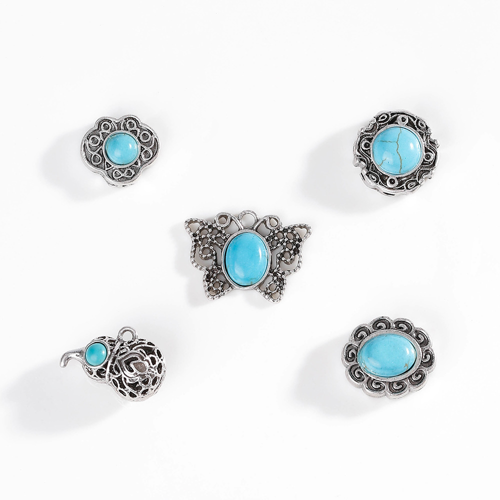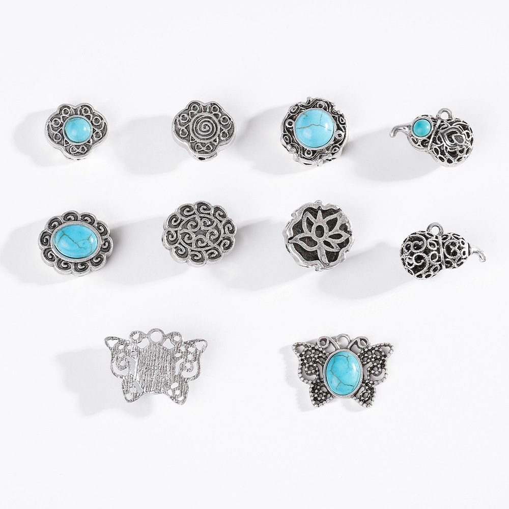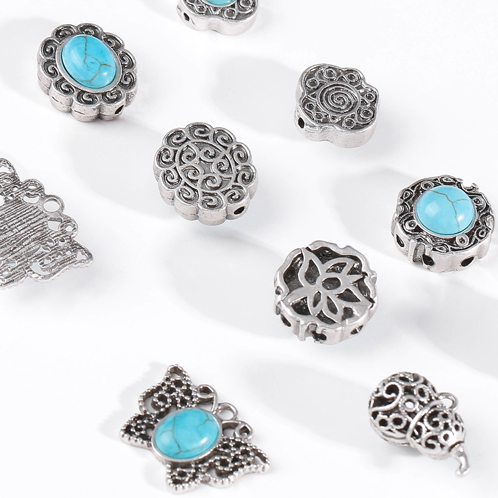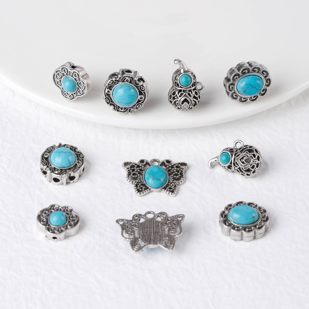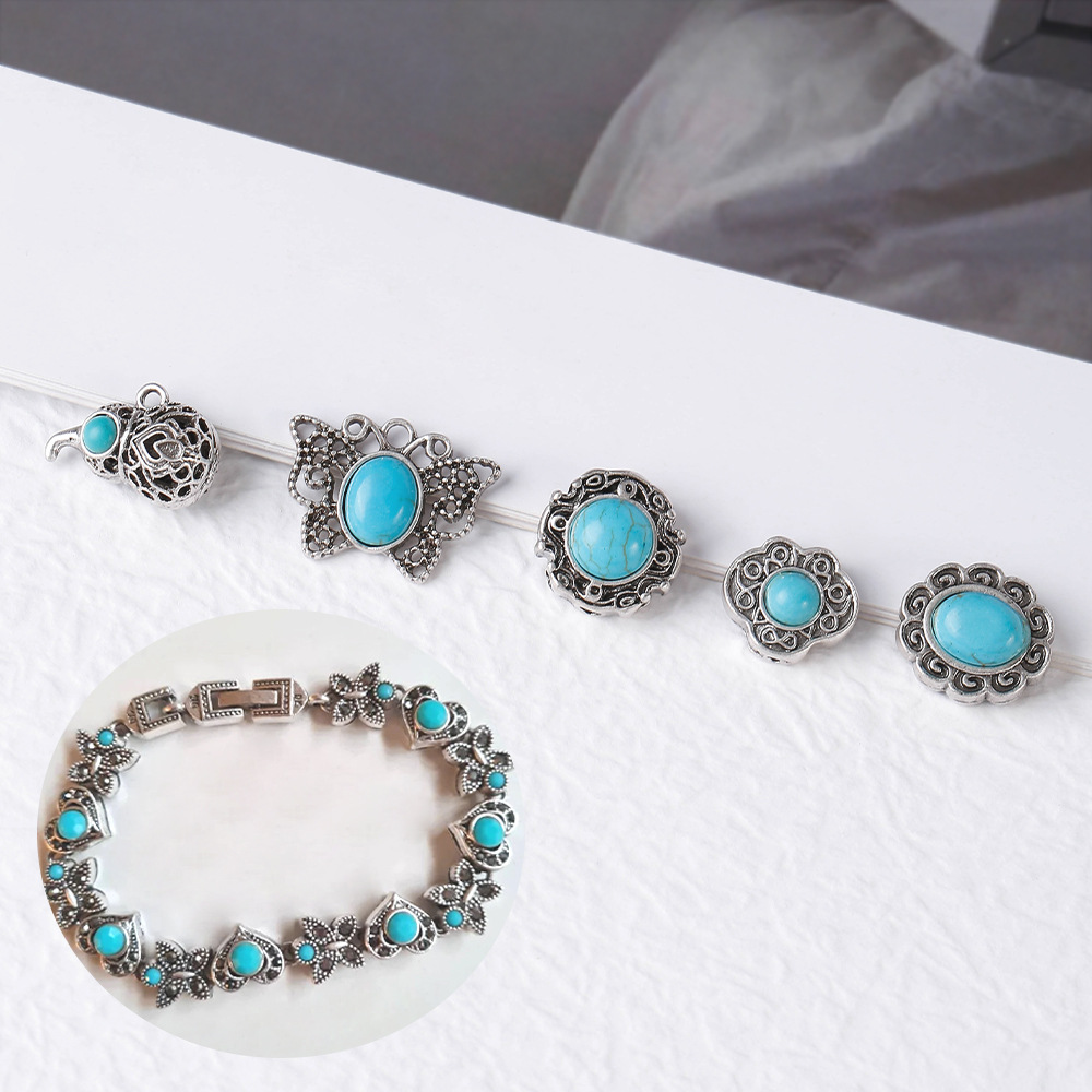 Ciondolo turchese, lega in zinco, with turchese, placcato argento antico, Forma diversa per scelta & DIY, nessuno, assenza di nichel,piombo&cadmio, Appross. 100PC/borsa, Venduto da borsa