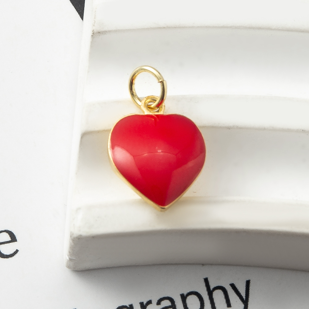 Pendente di ottone in forma cuore, placcato, gioielli di moda & smalto, rosso, assenza di nichel,piombo&cadmio, 10.60x6.40x17.50mm, Venduto da PC