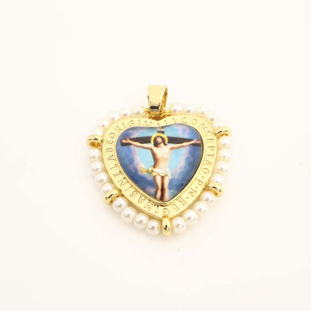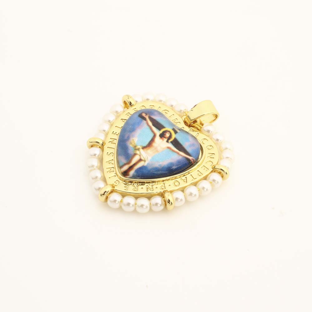 Pendente di ottone in forma cuore, with plastica & perla in plastica, DIY, dorato, Venduto da PC