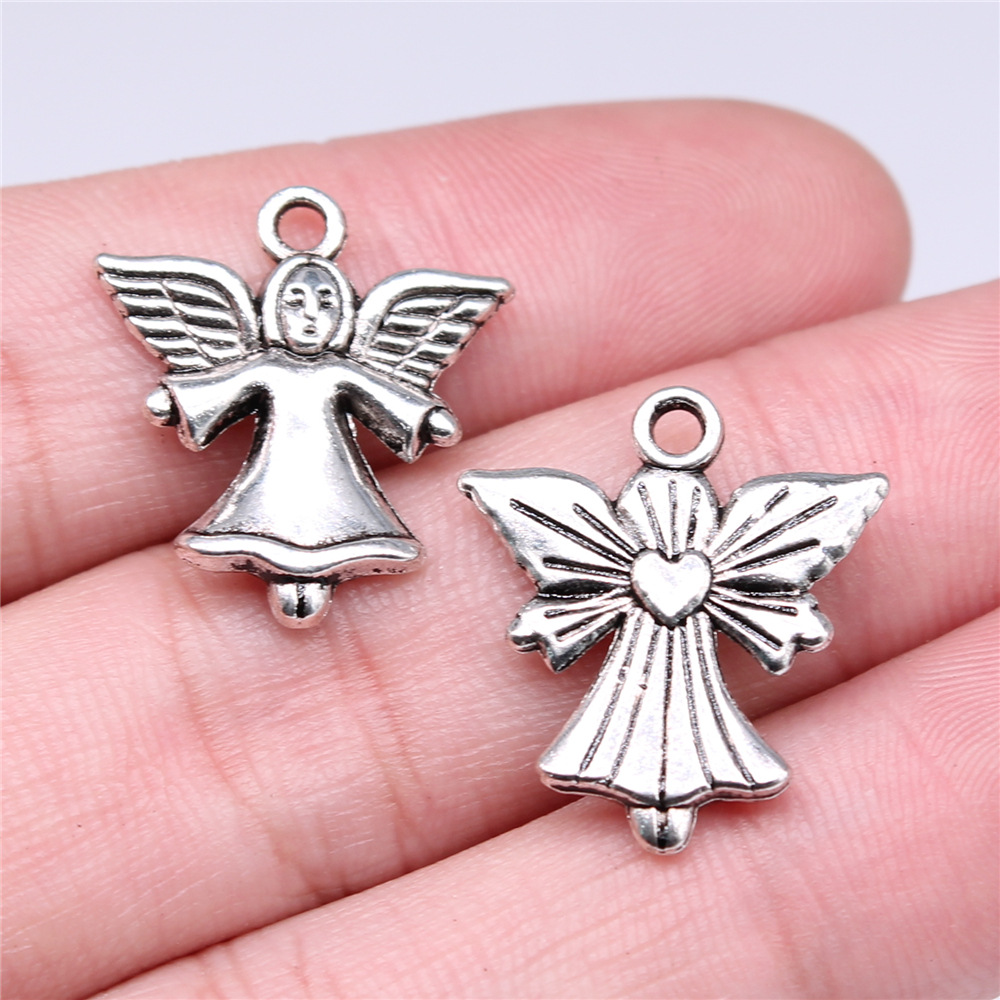 Ciondoli a forma di personaggio in lega di zinco, lega in zinco, Angelo, placcato argento antico, DIY, Venduto da PC