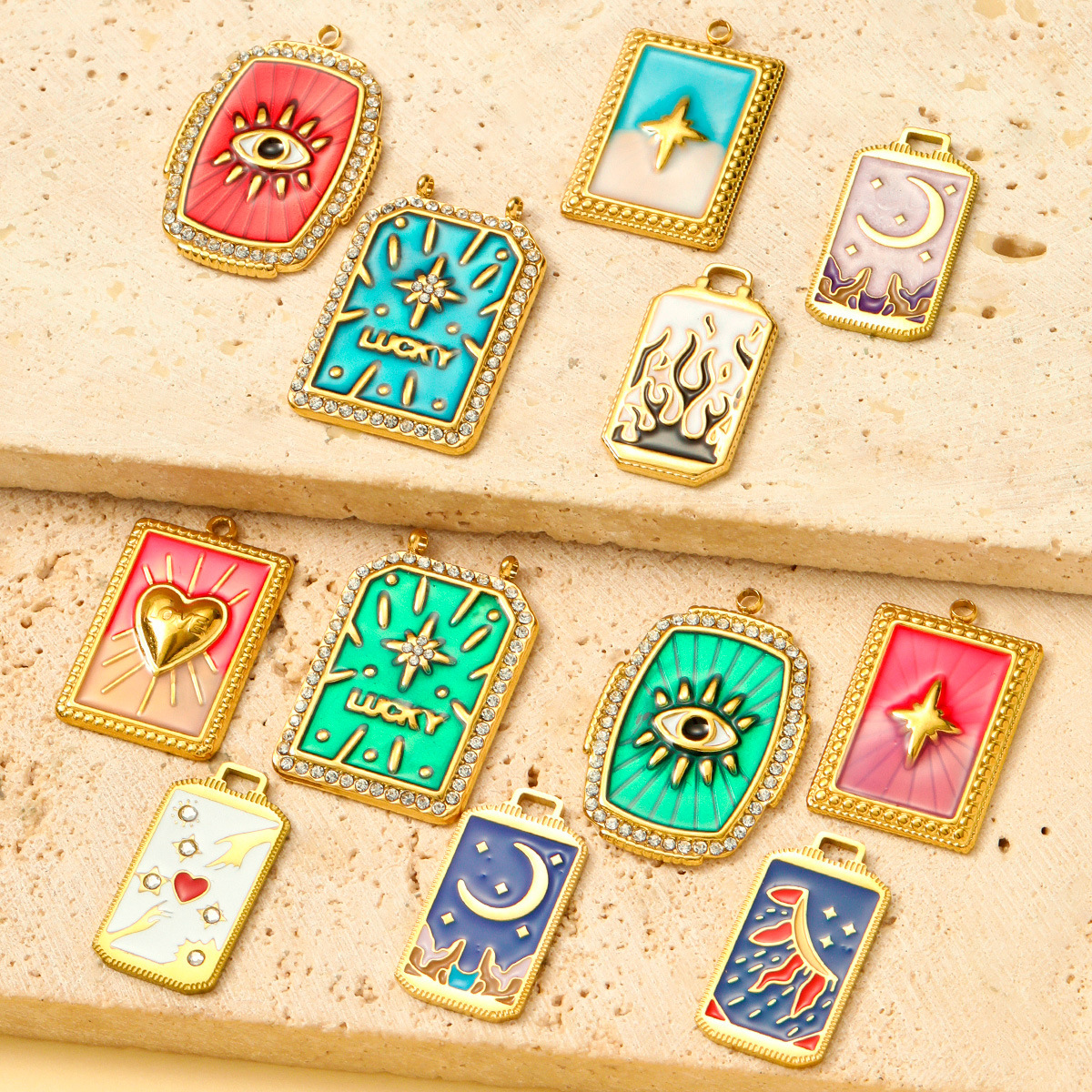 Ciondoli di titanio, Titantium acciaio, placcato color oro, DIY & stili diversi per la scelta & Micro spianare cubic zirconia & smalto, nessuno, 3PC/borsa, Venduto da borsa