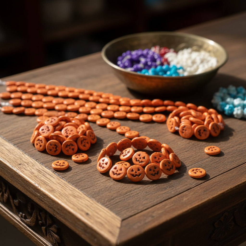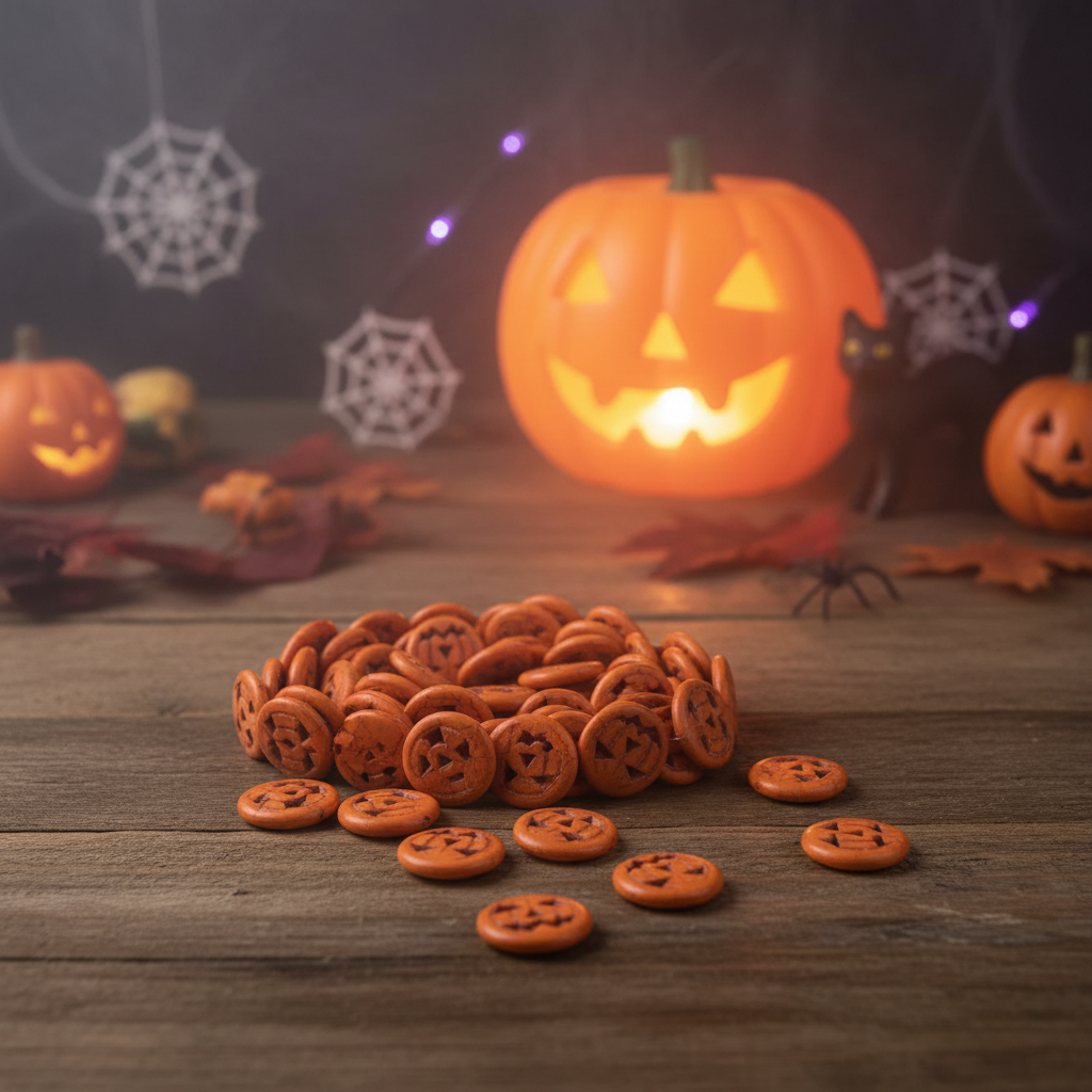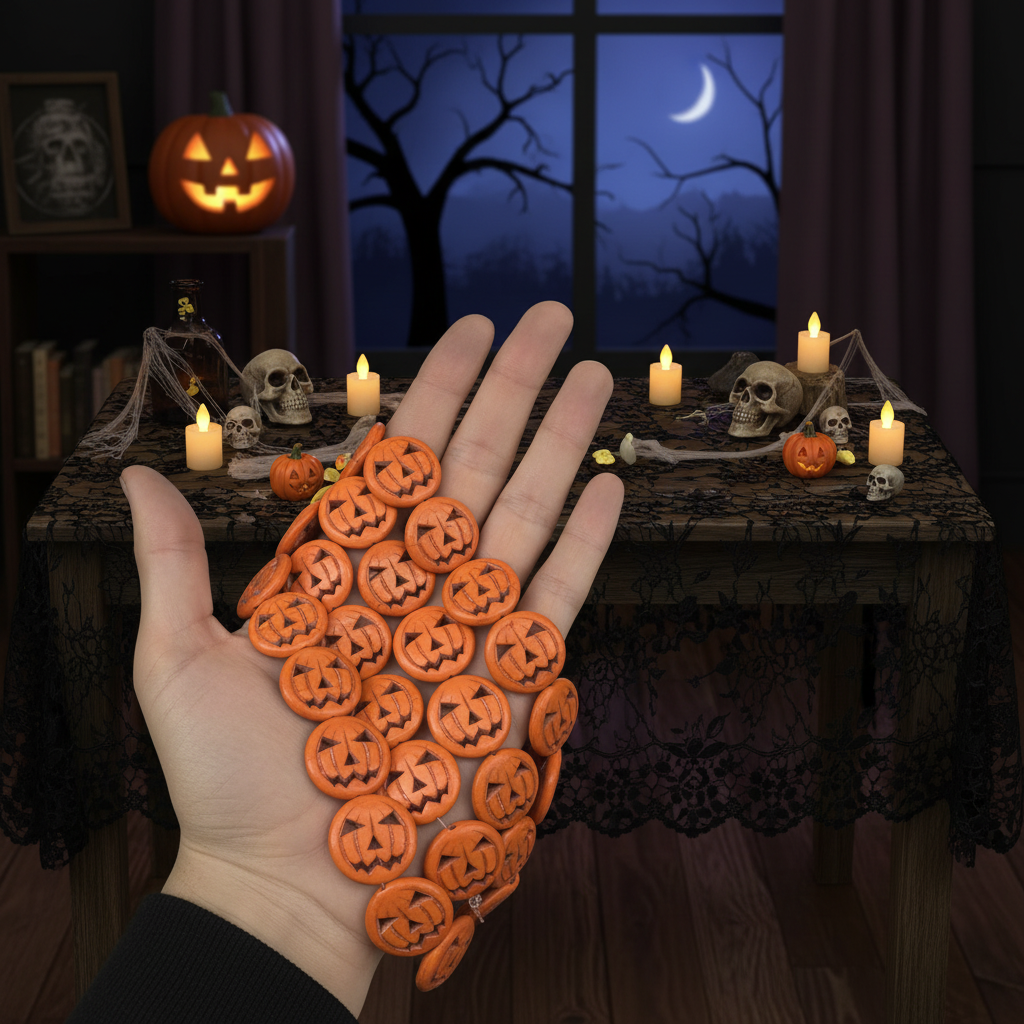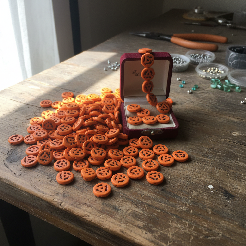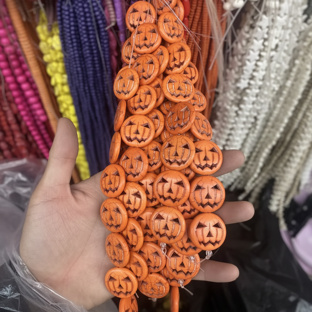 Perla gioielli Halloween, turchese sintetico, zucca, Design di Halloween & DIY, colori misti, 5.90x2.49mm, Venduto per 5 cm filo